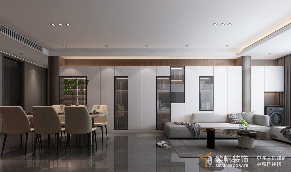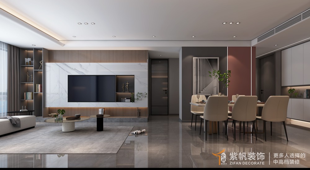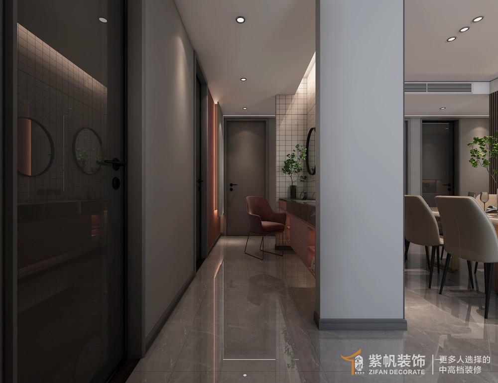 案例说明:方案风格定位现代风格,户型原始结构三方两厅,主要解决客户四房需求,通过采光点分析,以及实际人口需求,对户型进行了比较大的拆改,完美实现四房需求,卫生间外置的双手盆,以及内嵌的洗衣柜,也是家里一大亮点,整体造型采用了现代风格的线条,以及色块拼装,大胆的颜色碰撞让整个空间充满了更多的可能性。