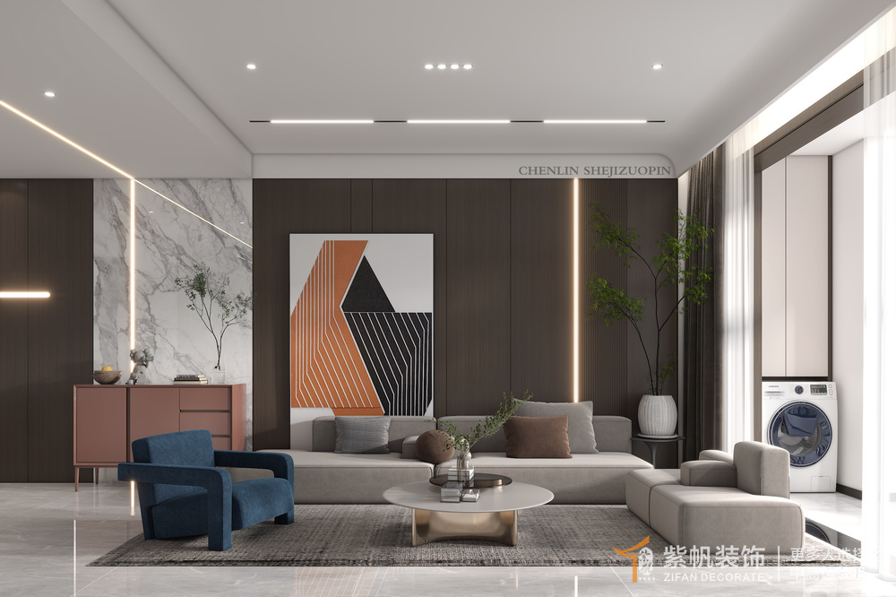 案例说明:方案风格定位现代极简风格,户型原始结构四房两厅,业主女性,一个人居住,读整体空间要求美感较高,且储物空间需要足够大,通过详细沟通,我们对户型进行了调整,进门处限行等造型,拉伸了整体的空间感,同时进门右侧实现了业主的大鞋柜需求,以及卫生间干湿分离,整体造型较为简洁,采用了现代无主灯吊顶,在顶面空间我们尽量做到极简化,主卧室改造了一个超大衣帽间结合梳妆台,满足业主的衣物收纳需求,