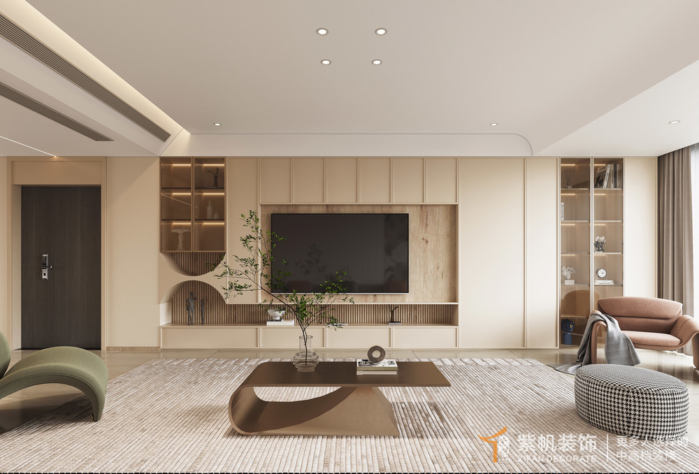 案例说明:在这节奏飞快,有一方属于自己的净土,为业主量身定制的布局,通透简约又温暖的奶油色,每个简洁精致的空间还具有超强收纳。风格并不是整个空间的主体,灯光,材质,色彩,及结构都是以人为本,从实用功能出发,感受于空间带给你的情绪。低饱和度的奶茶色空间基调自带高级感,木色与米色系的搭配丰富空间的色彩层次,整体的治愈 ...无主灯设计,暗藏式光源营造静谧,柔和的内在氛围。