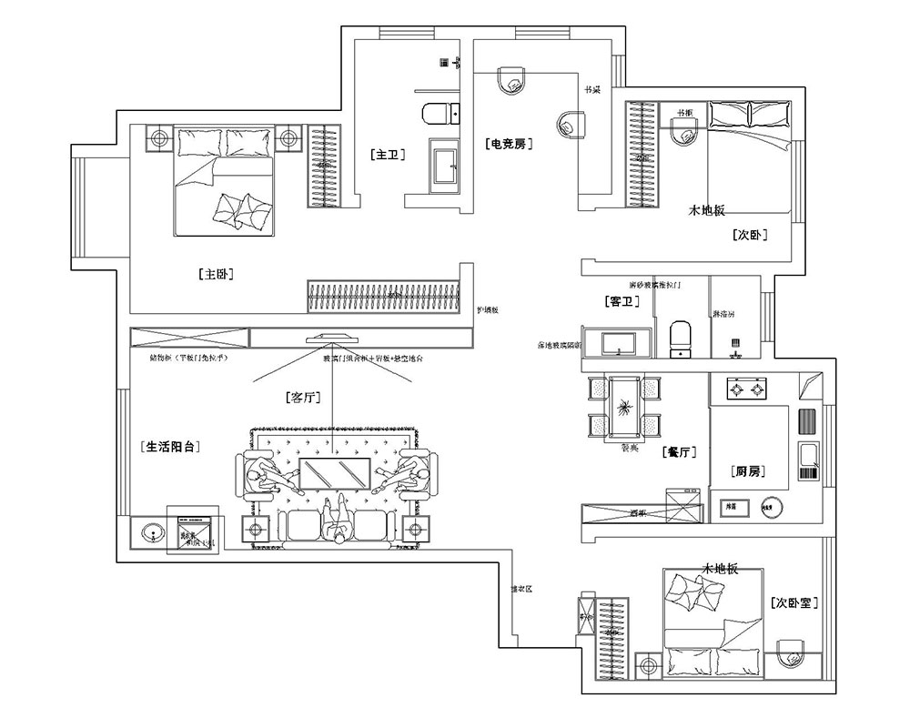 案例说明:业主是年轻小两口,喜欢不上班的时候宅家玩游戏,因此设计了一个电竞房,双人电脑桌,偶尔加班也可以当成书房使用,一举两得。喜欢家里看着简单干净的感觉,整体设计以白色调为主,温馨雅致,采用时尚的家居和装饰单品,提升品味。