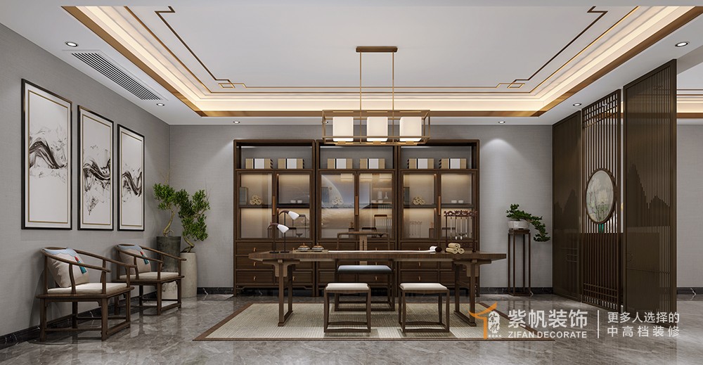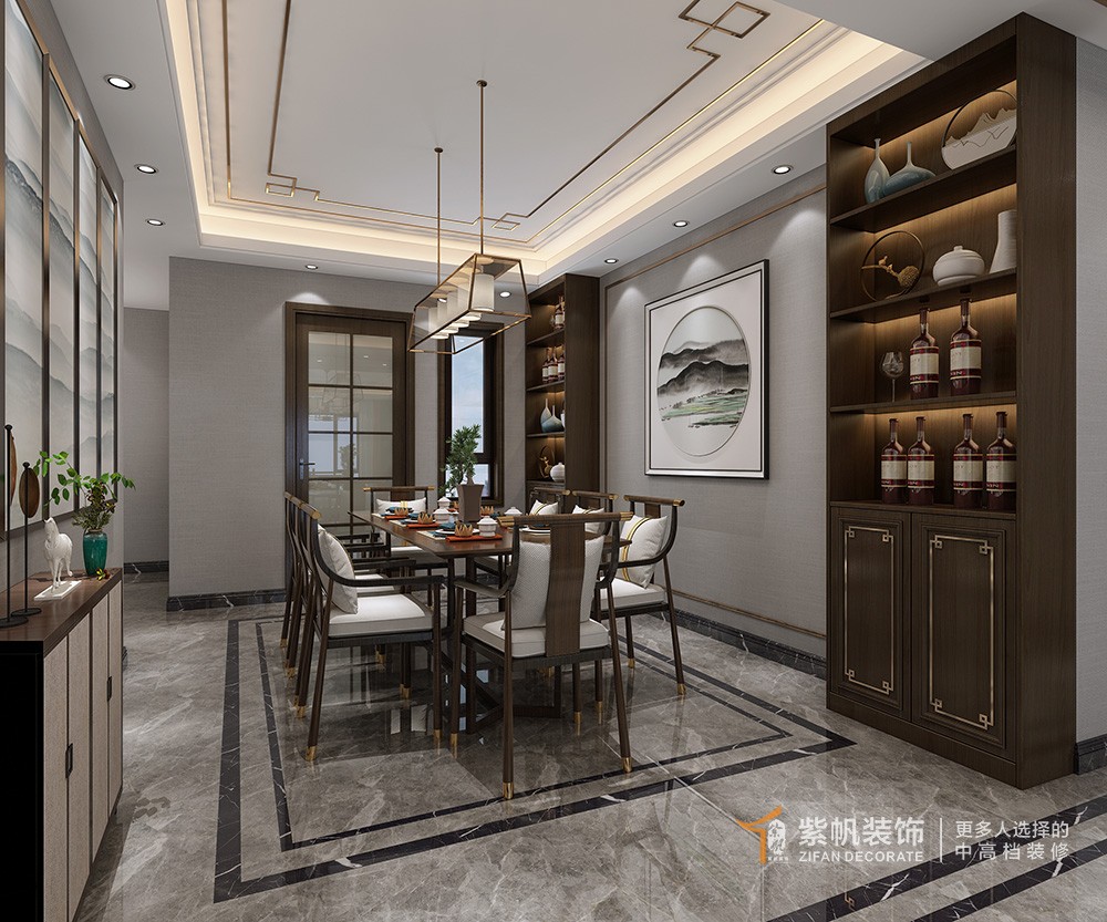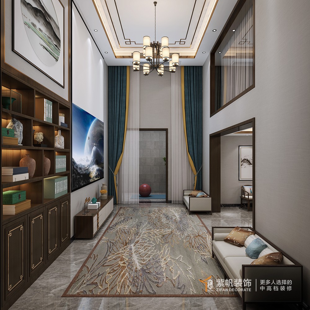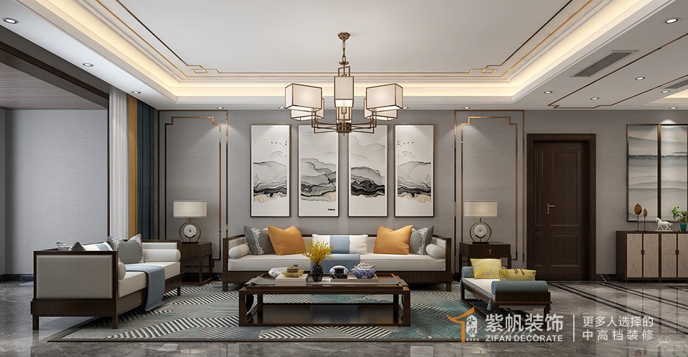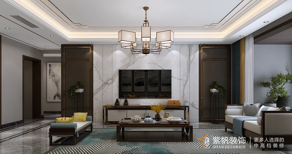 金沙湖高尔夫官280平新中式风格装修效果图