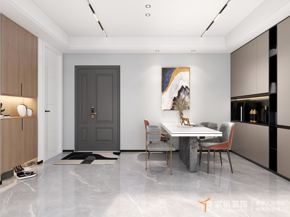 案例说明:业主喜欢简单精致的生活,在本案设计初期经过三次详细的沟通,最终定稿,设计以简约风做底,局部搭配温馨的原木元素烘托居家氛围。
