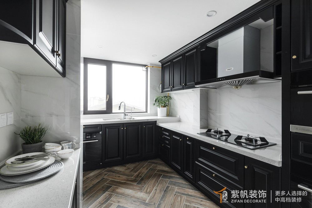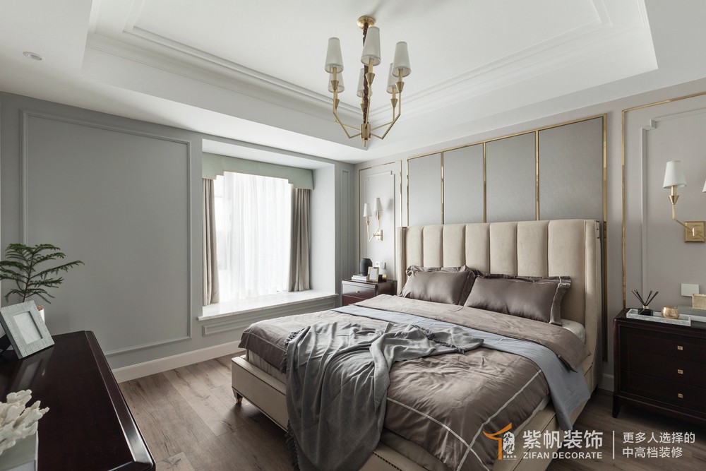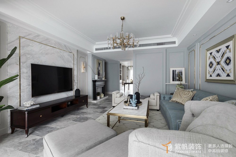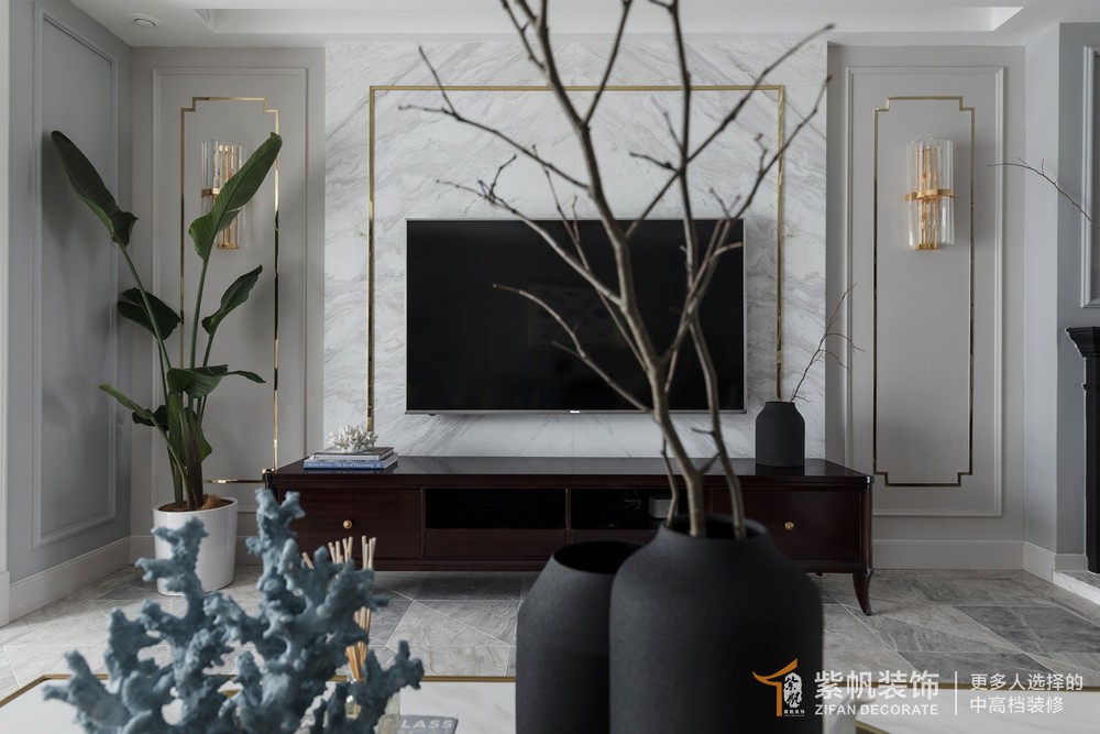 设计说明:本案将大美风与金色碰撞,彰显出浓郁的贵族风情。空间的设计不拘一格,手法流畅利落。以温和的大地色系强调温馨的归属感,深棕色彩注入沉稳的格调。设计师删繁就简,思考空间设计的本质,创造出简约利落的美式空间。
