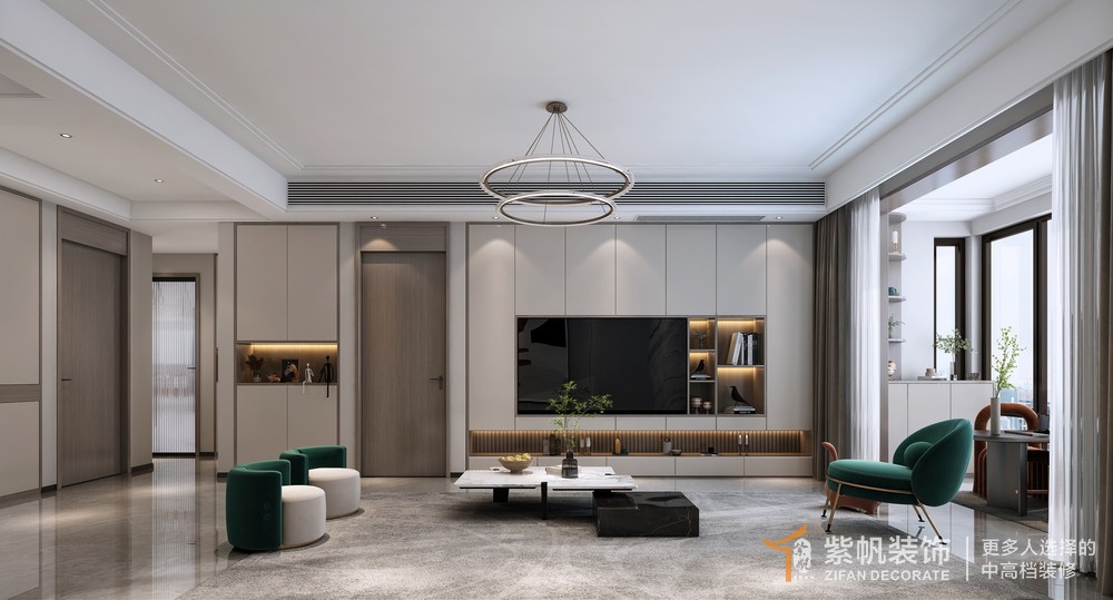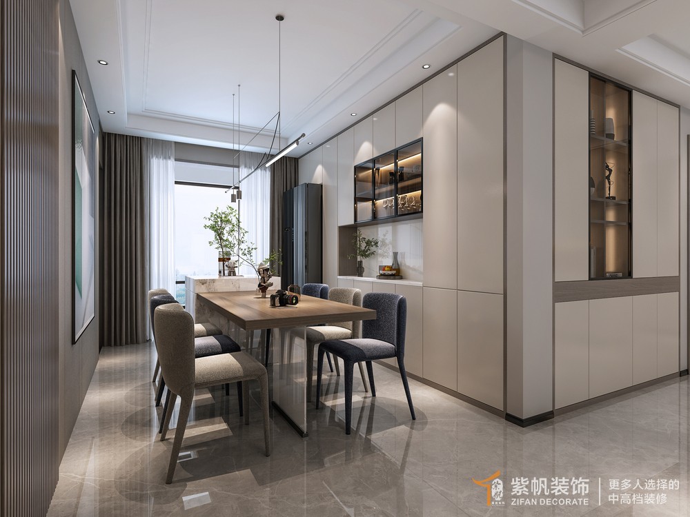 案例说明:一家5口人,业主为年轻夫妇,一个宝宝,设计中主要考虑简洁,美观,大方,收纳空间要够多。在满足功能第一的前提下,将空间,人及物品进行合理精致的组合,用最洗练的笔画描绘出最简洁素雅的空间效果。