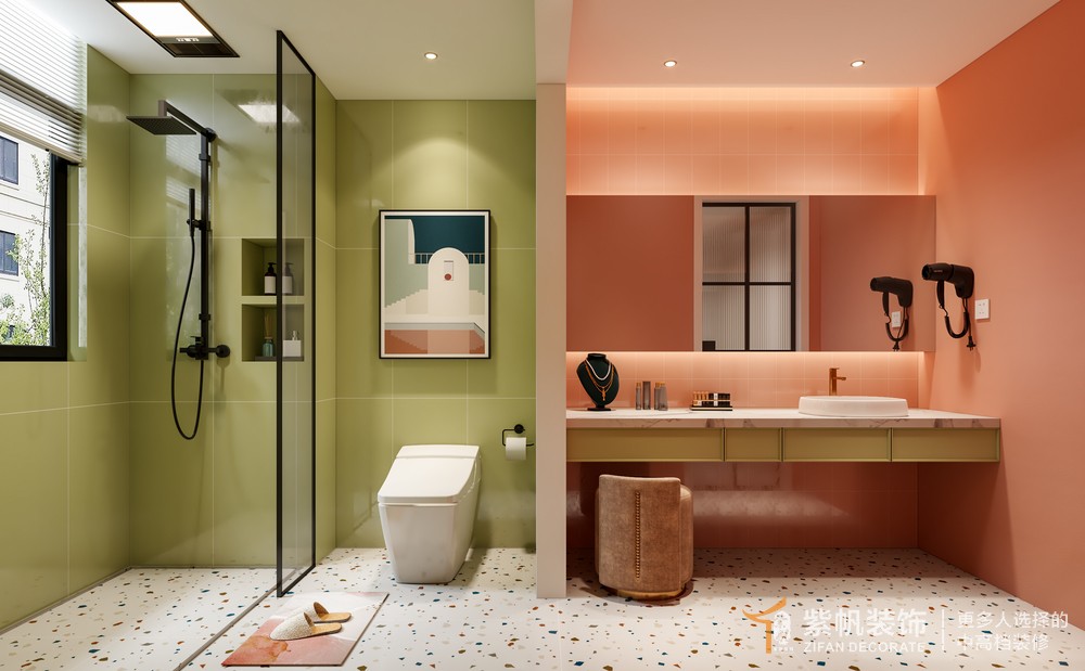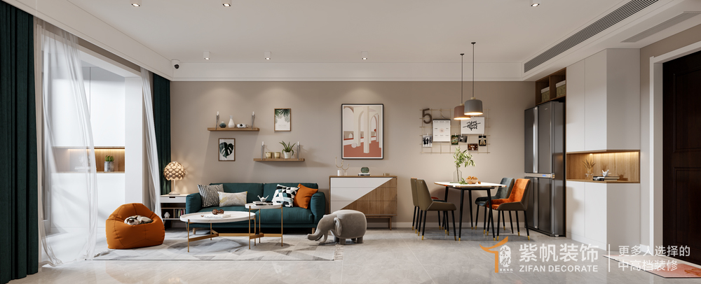 案例说明:客户一家三口 整体设计要求小清新 要有北欧的格调 设计时房子整体限制性比较大 所以多用色彩来突出整体整体风格 颜色多用比较流行的脏粉 橘色 以及浅绿 打造房子的空间感 时尚感 用白色柜子来正大空间的亮度 整体氛围客户特别喜欢