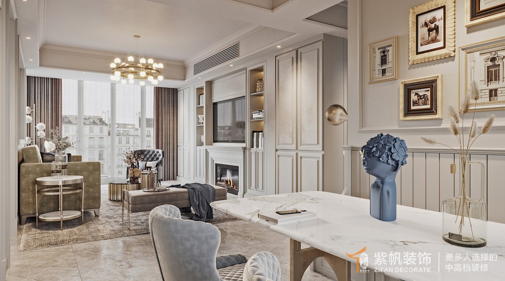 正商智慧城140平美式风格装修效果图