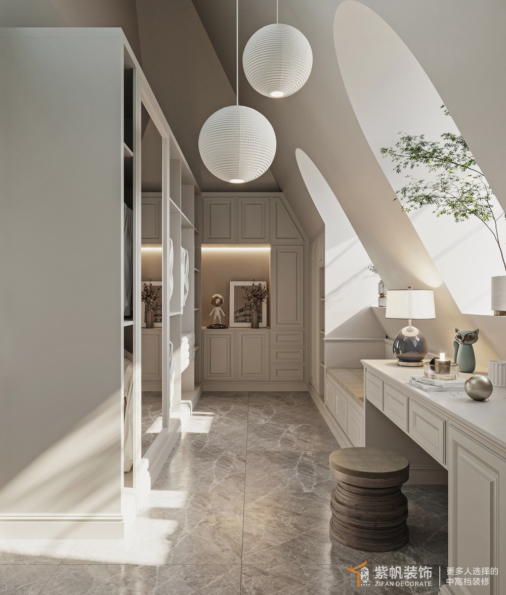 案例说明:客户房子顶层带阁楼阁楼空间使用率比较低 客户年龄偏大 设计多用护墙板增加房屋整体质感,做突出造型 让整体风格更加突出 用木制作加大储存空间 满足客户的空间储存需求 阁楼窗户用圆拱透光造型 增加现代时尚感 客厅与休闲室开窗增加空间的链接性 给予客厅更加大的空间感 整体感觉房子更加大更加豪华