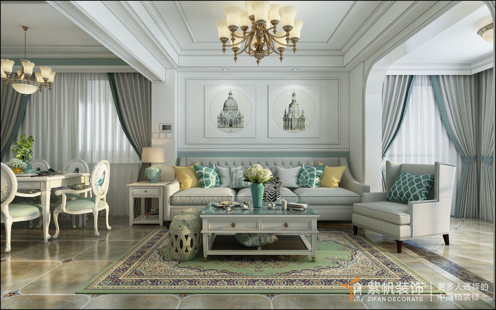 案例说明:业主比较喜欢这个法式的色彩,搭配起来很合他们家人的心意。