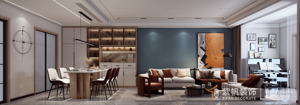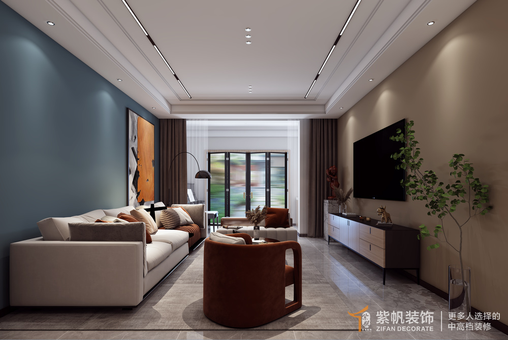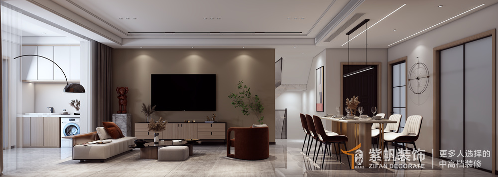 案例说明: 业主喜欢现代简约,形成很舒心的风格,功能齐备,舒适性高。