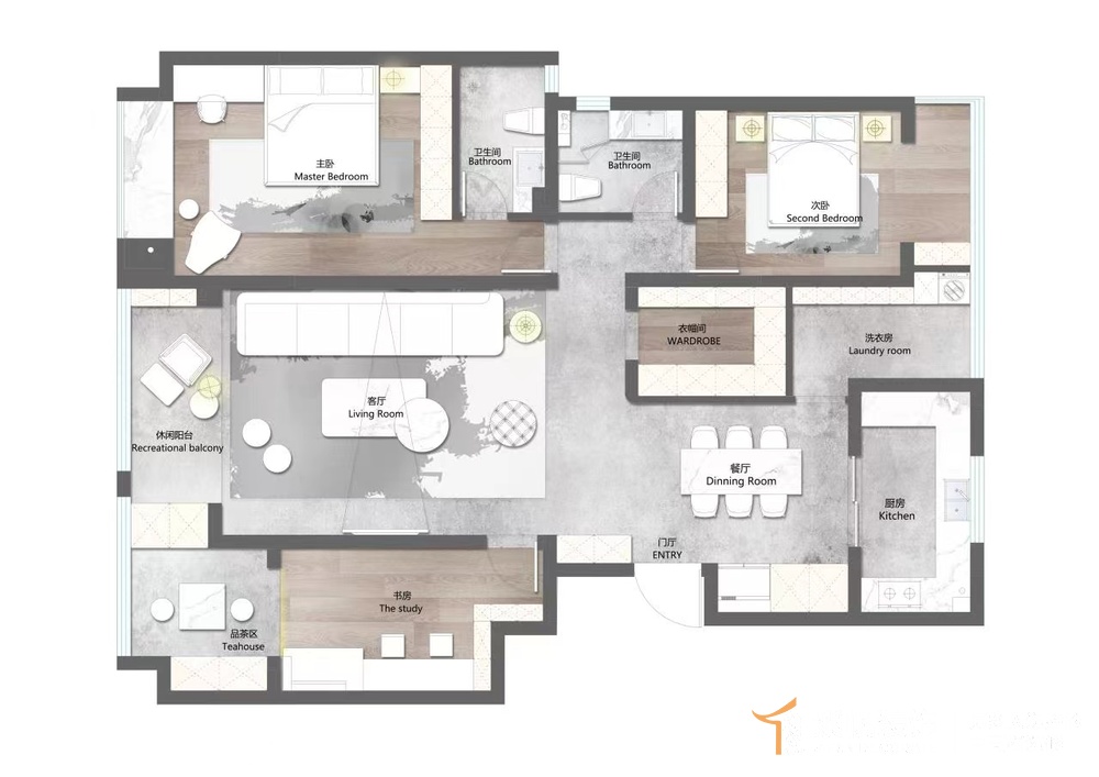金水府160平原木风四居室装修效果图