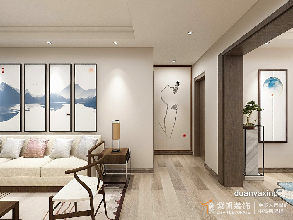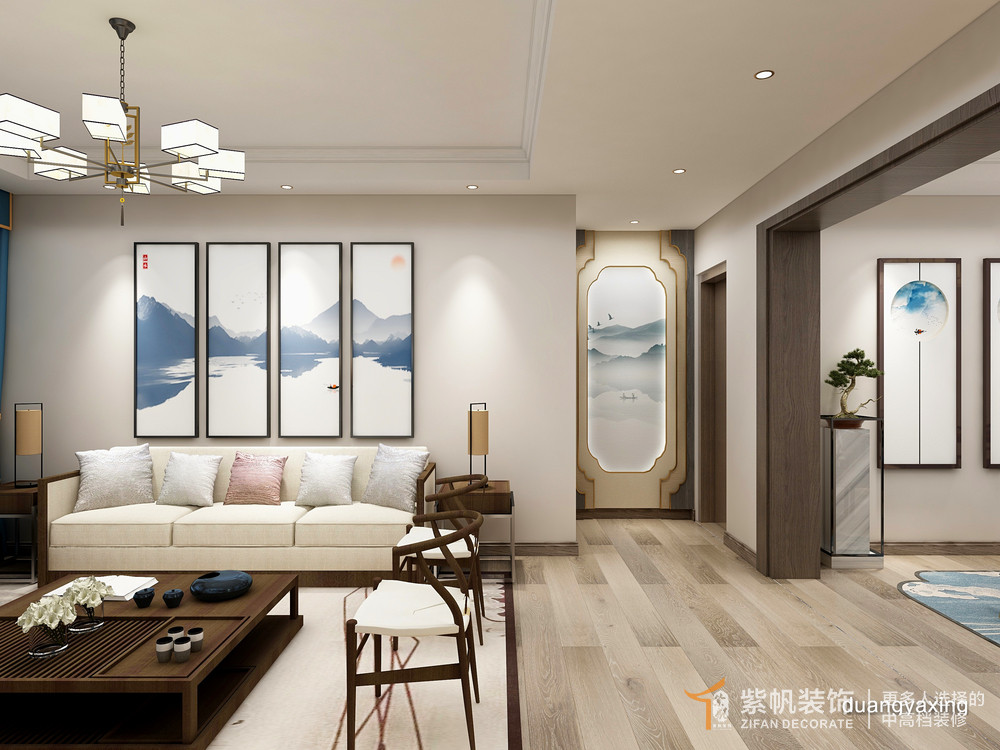 案例说明: 客户是一对上年纪的叔叔阿姨,退休在家,旧房改造作为养老房,喜欢传统风格,不想家里边有太多的装饰,所以推荐选用了新中式,全房木地板的设计使得居住舒适温馨,原木线条与国风壁画的搭配相得益彰。
