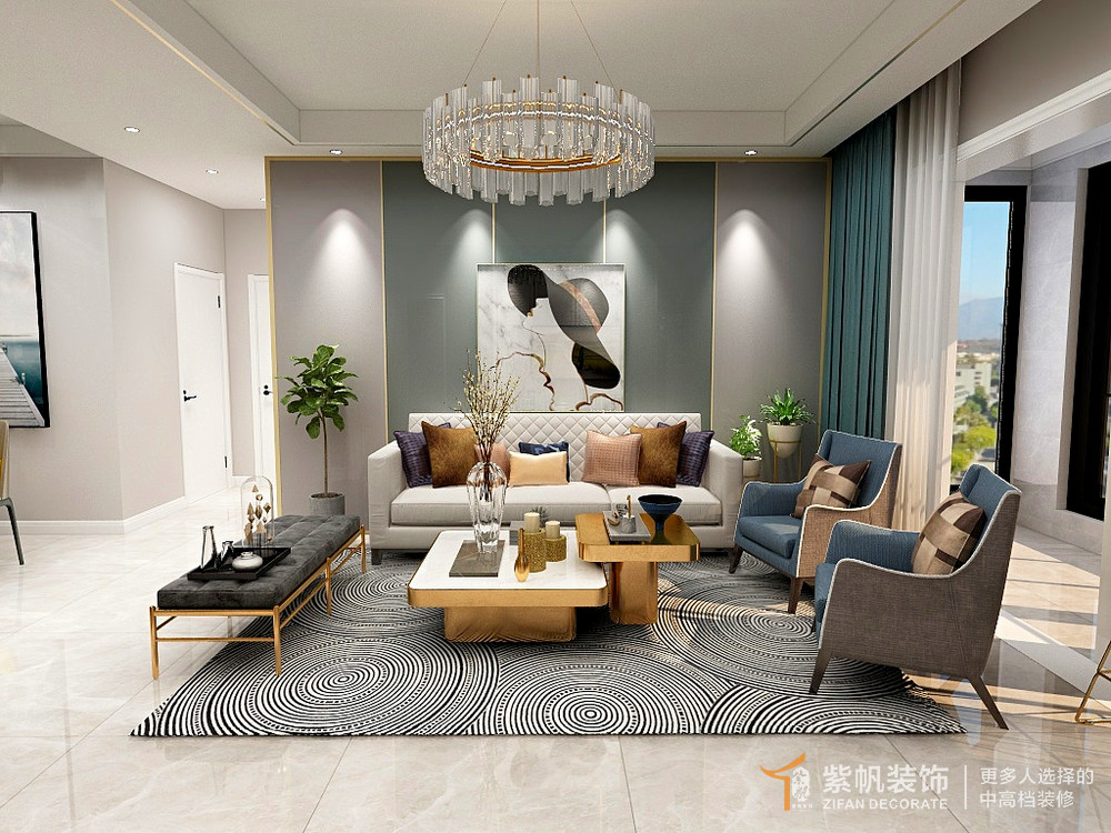郑东碧桂园126平现代轻奢风格三居室装修效果图