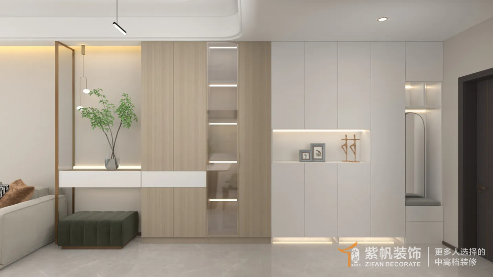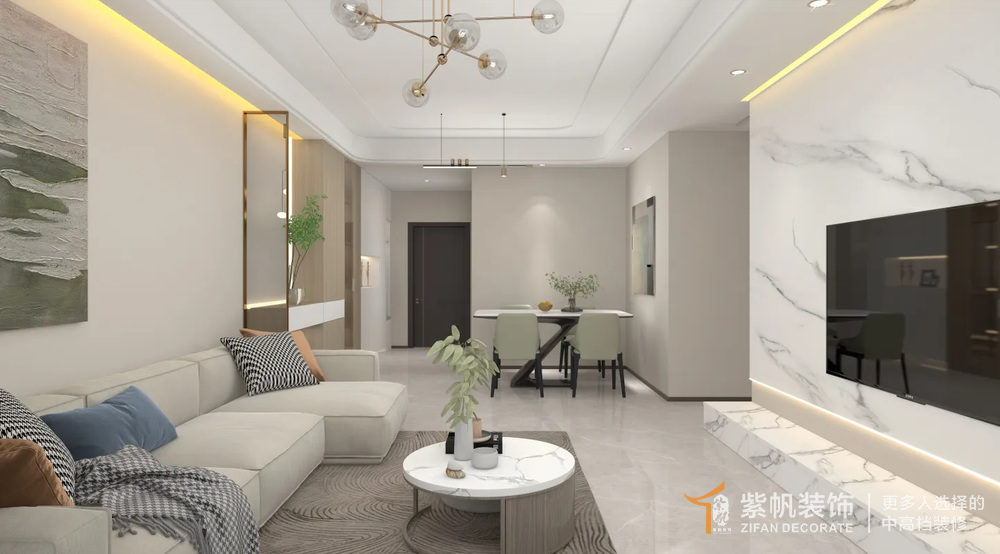 设计说明:户型为南北通透小三房,客厅与餐厅相通显得空间比较大,所以在设计时地面,顶面,墙面不采用单独分区,功能上面又无影响的条件下,保持空间大的效果。简单而实用。