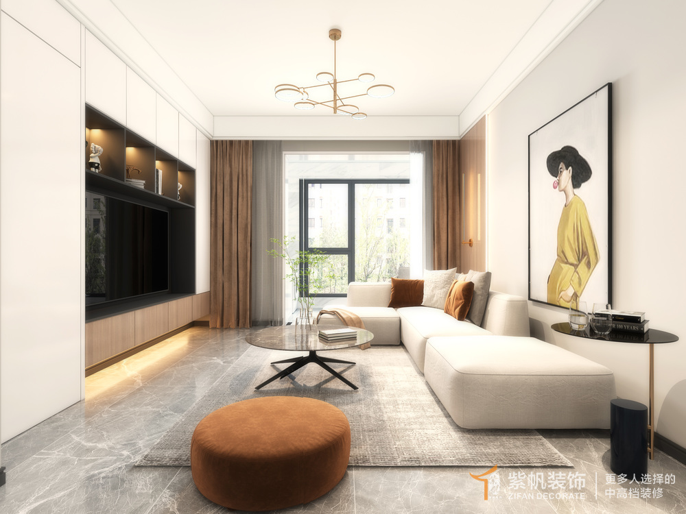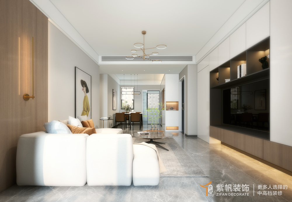 绿地花语城清风苑117平现代风格三居室装修效果图