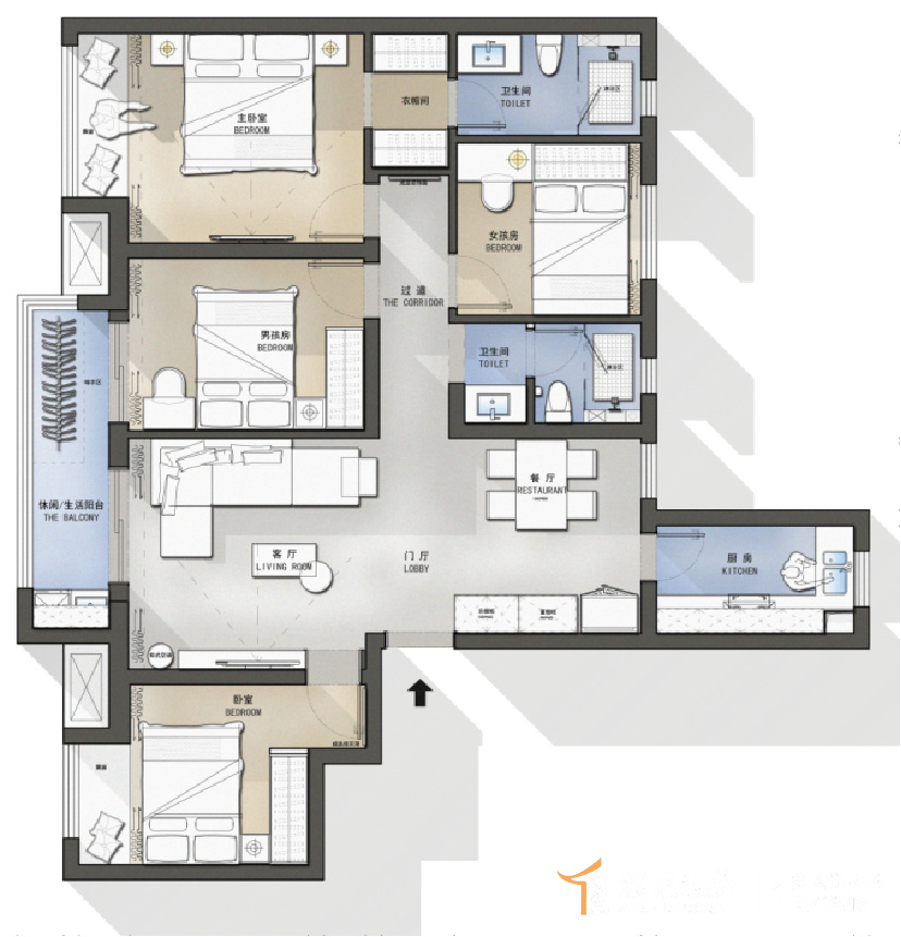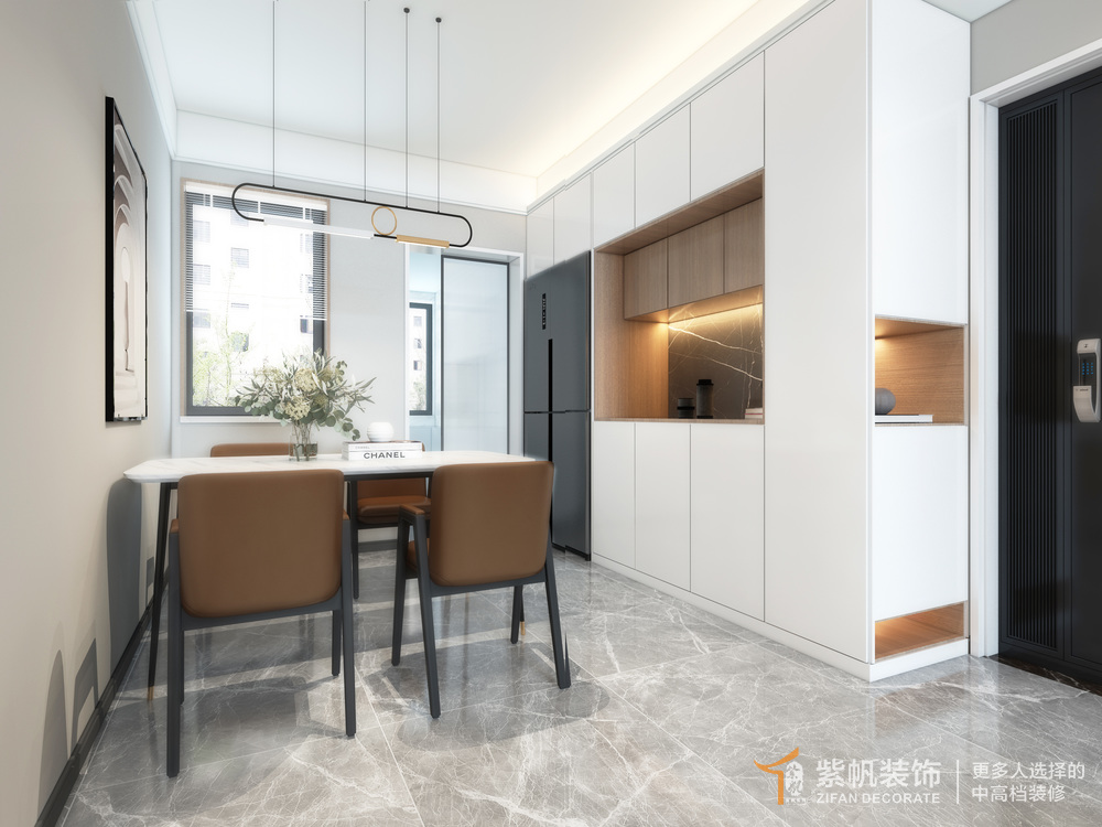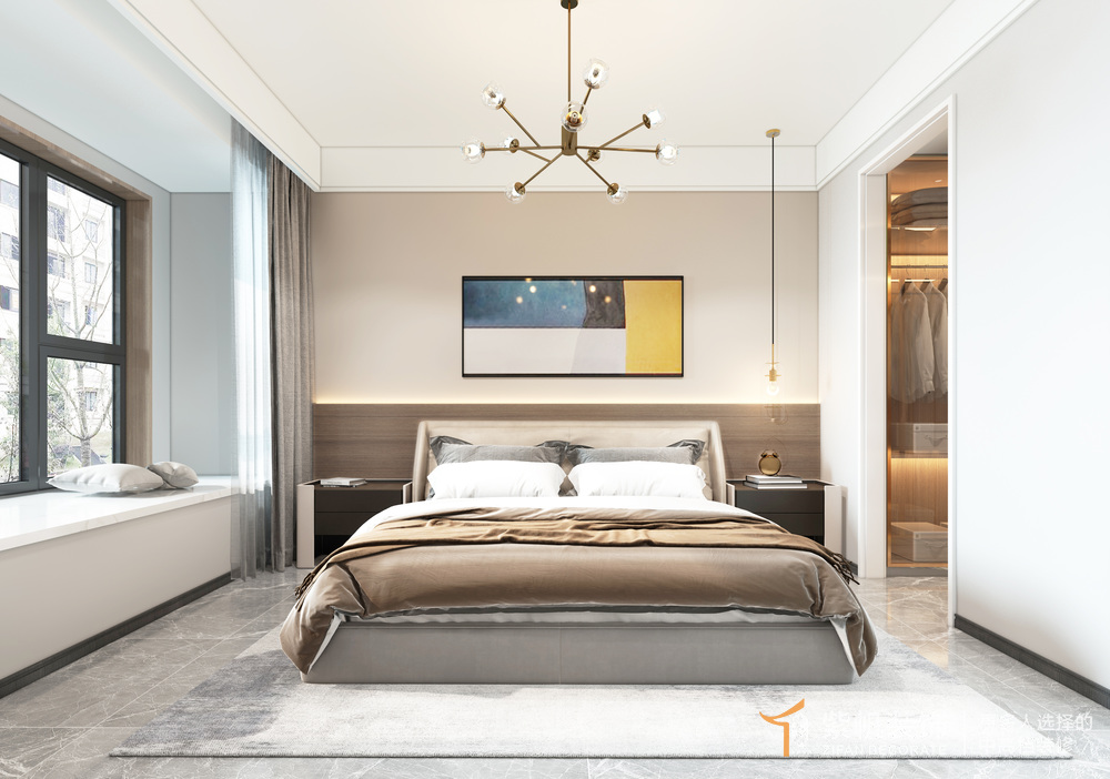 案例说明: 从平面设计上,玄关位置缺少储物功能,利用餐厅的空间做玄关加餐边柜的储物,在立面结构上做一些设计。简约的设计更是的空间比例增大,软饰方面以简单为主,去除繁琐的装饰,使空间更舒适,主卧室步入式的衣帽间储物量增加,也避免了卫生间对床的带来的影响。