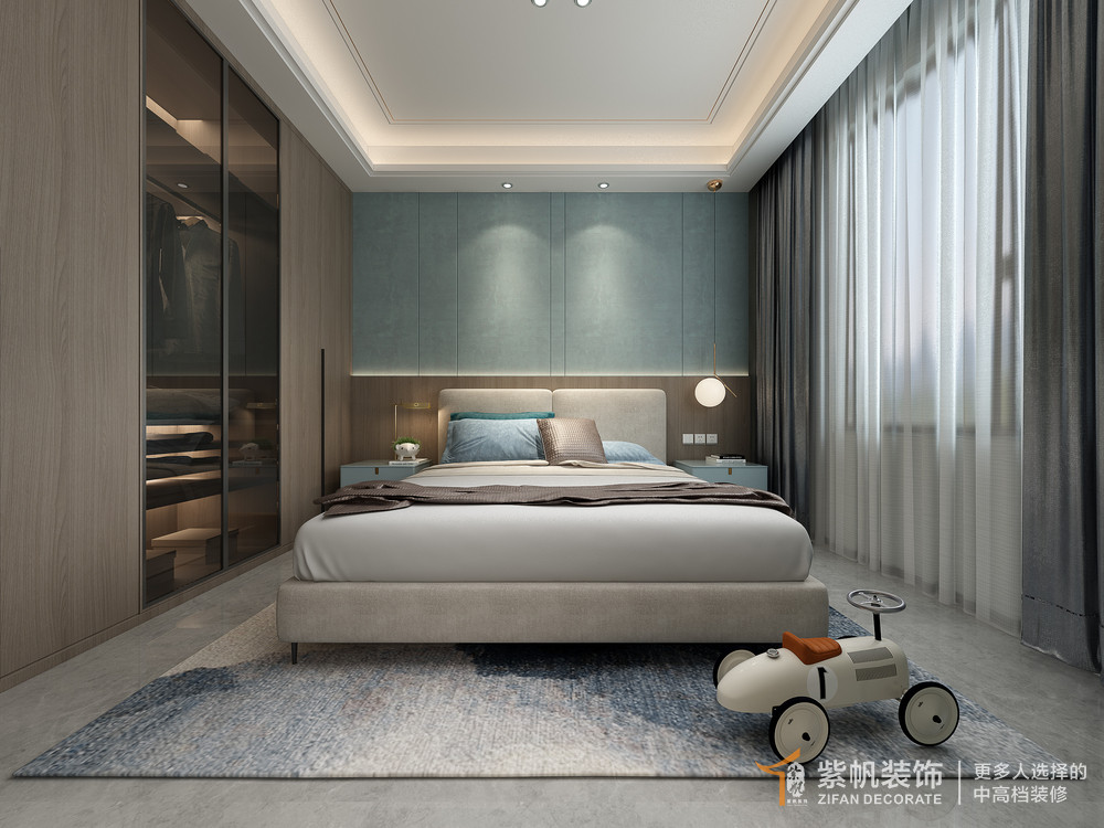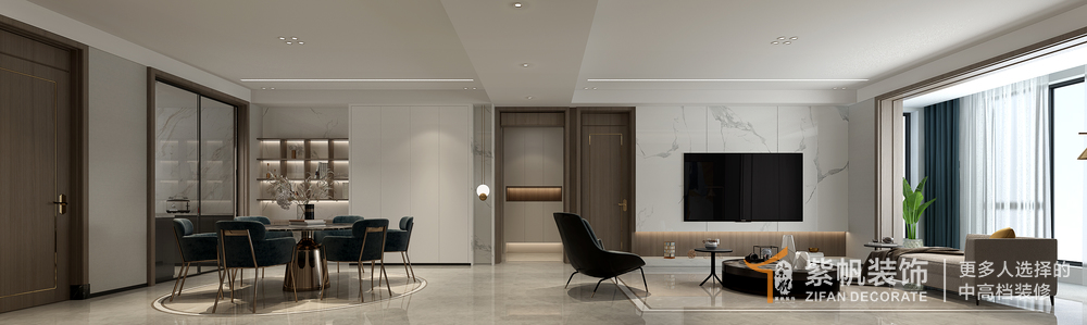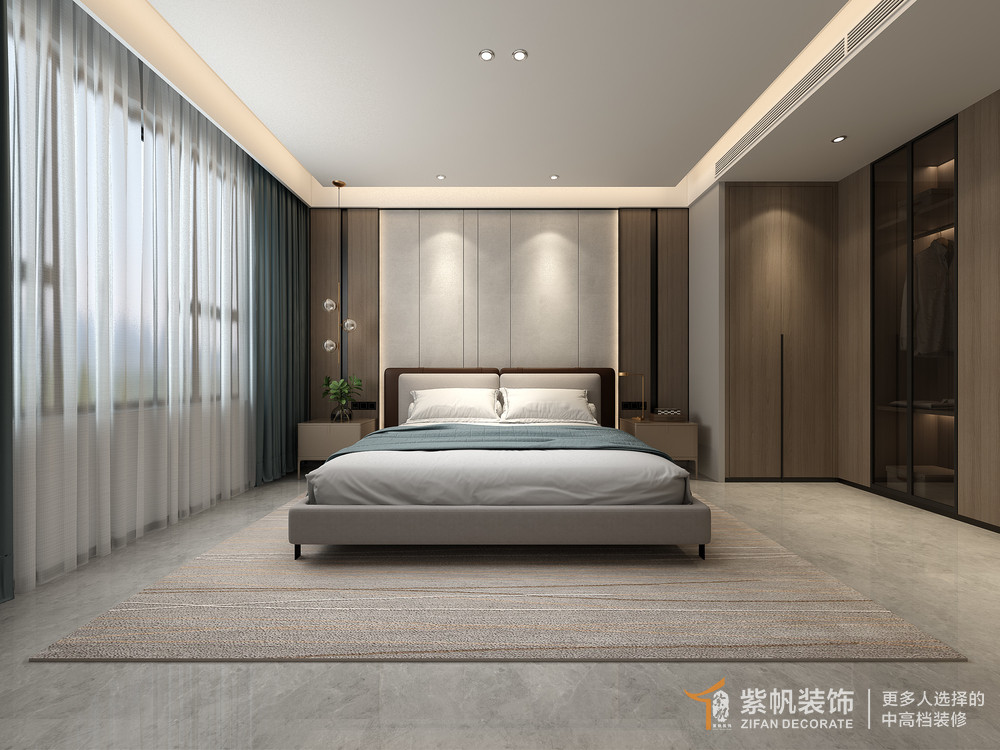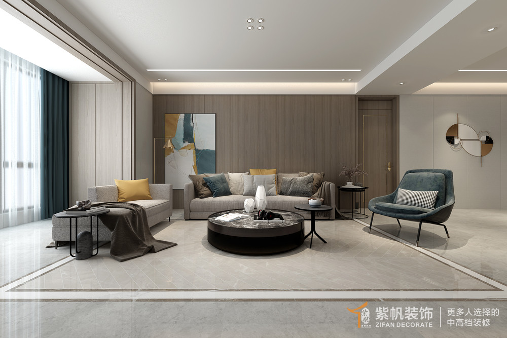 案例说明:整体中性色调,简约干净,奢而不华,木饰面拼接,采用无主灯设计,提升空间氛围感。