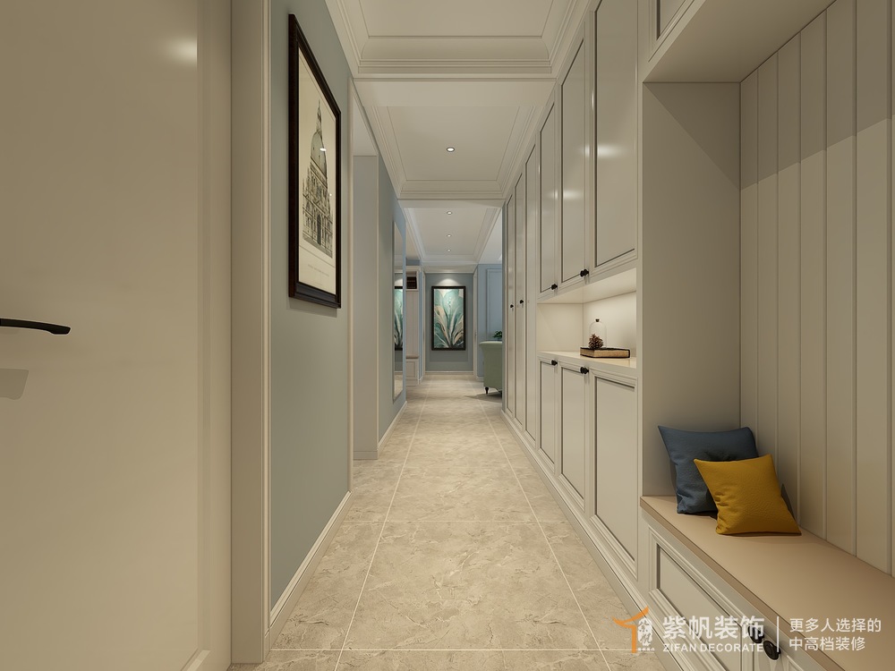 案例说明:整个空间通过简约的线条,纯粹的材料,利落的量体造型等元素,低调优雅又不失整体性。