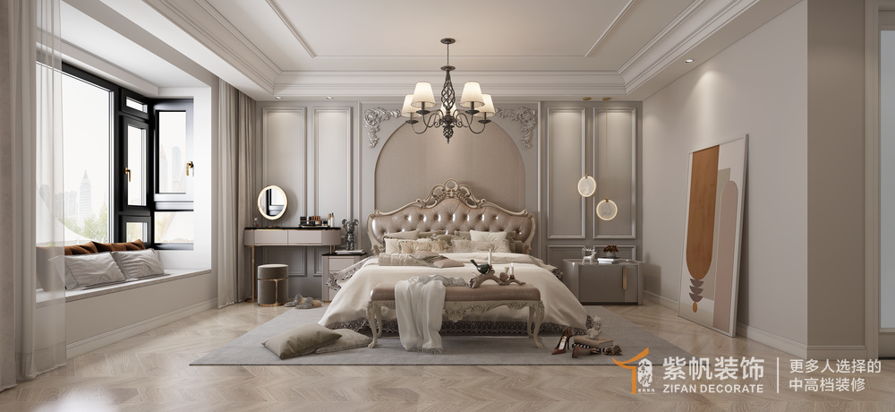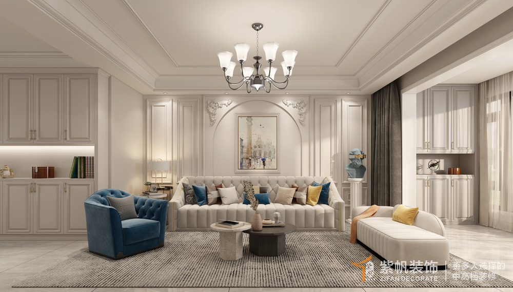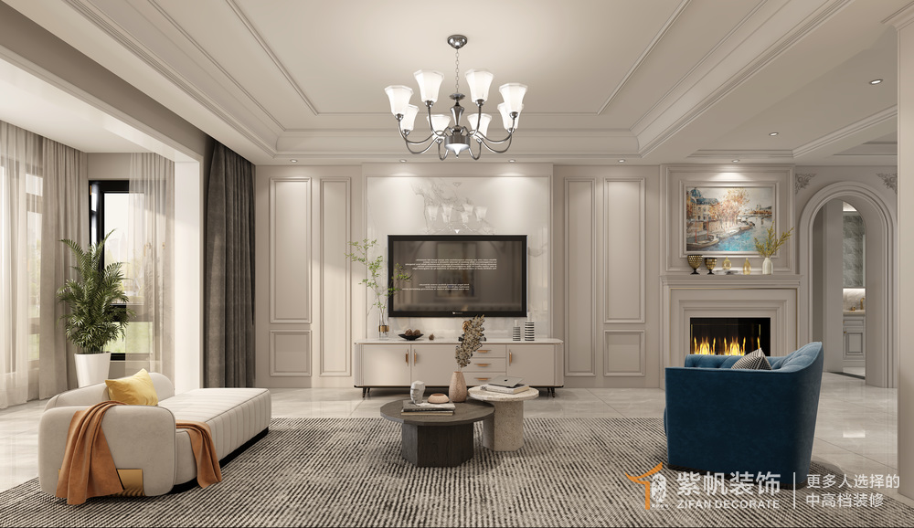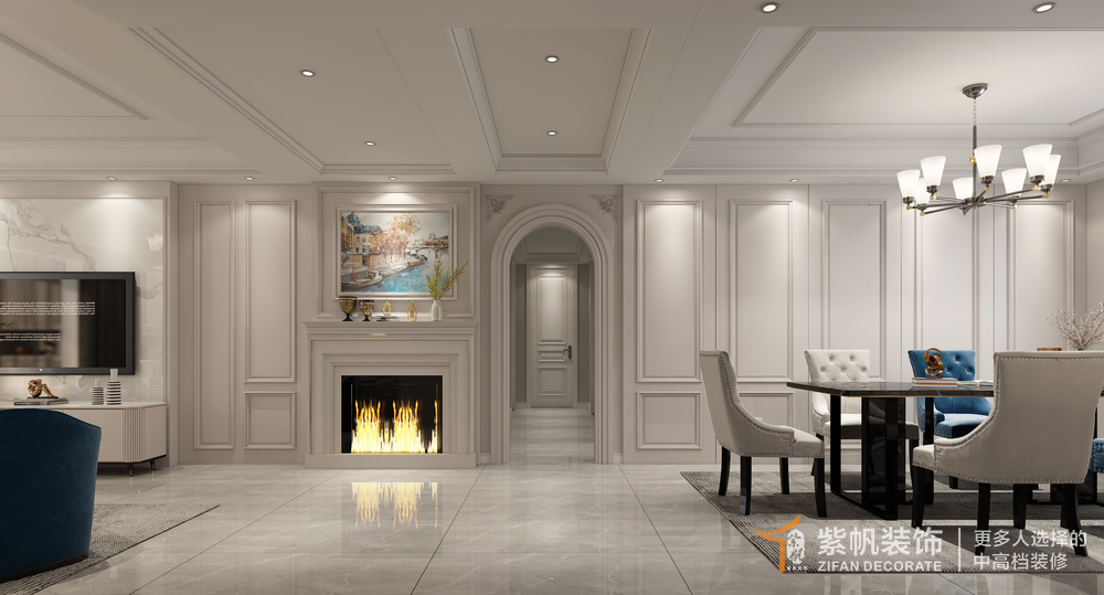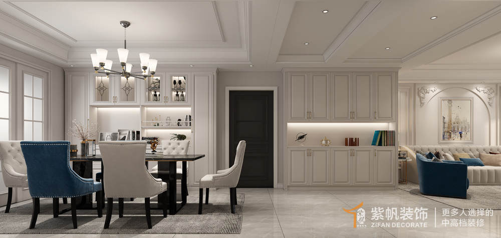 案例说明: 整体空间运用了大量的护墙板,增加了视觉上的层次感,奶油灰的整体色调也更有家的感觉 。