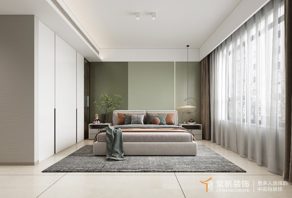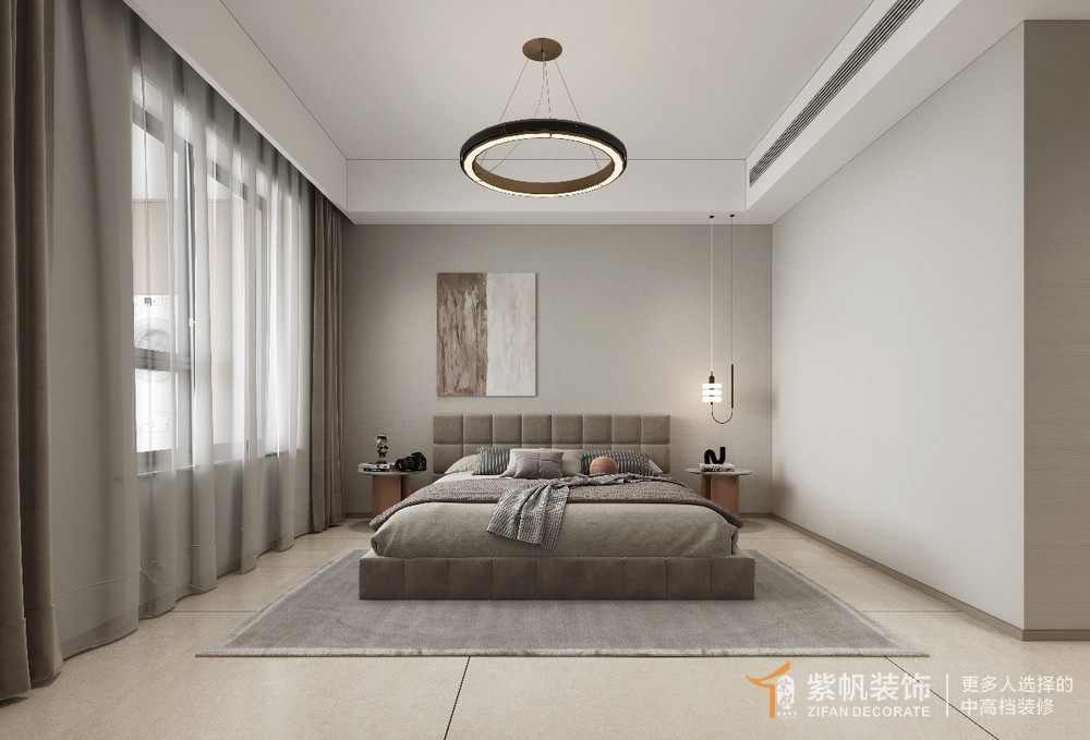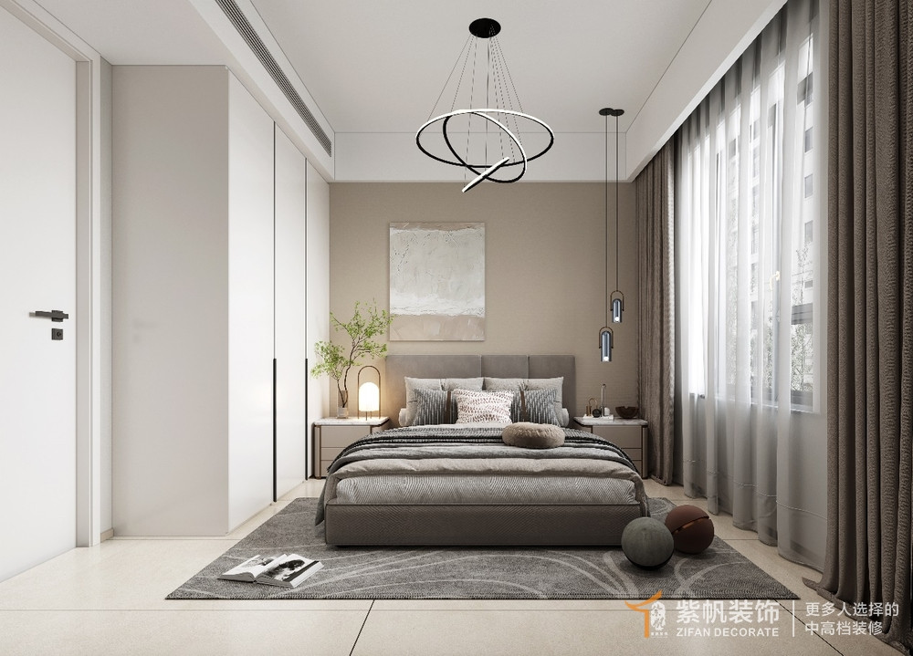 案例说明:你必须内心丰富,才能摆脱生活表面的相似性。如果说厅堂是主人艺术与文学品味的体现,卧室空间则更彰显一分自然随性。从开阔空间步入私密居所,空间在流转中被延续,柔软触感的织物,色调温和的窗帘,无一不在传递着舒适,安宁。