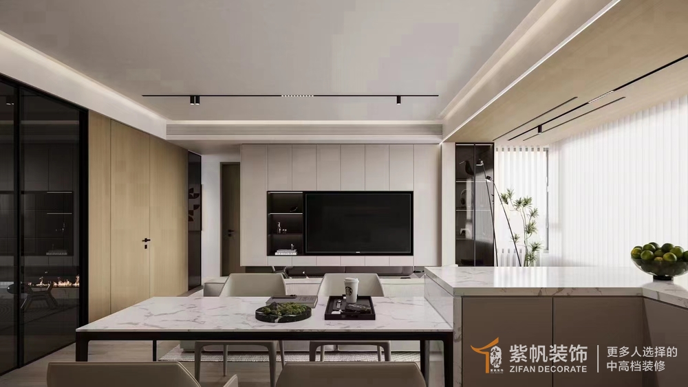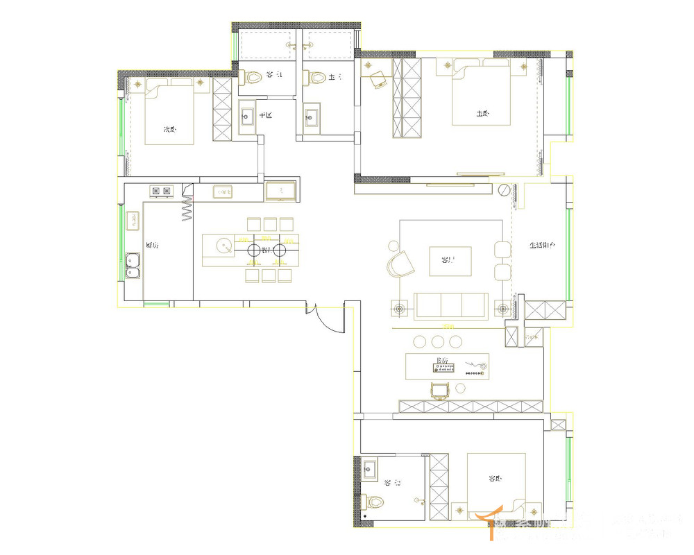 案例说明: 客户是四室 对客厅活动空间要求较高 在设计过程中把第四个卧室打开 做成公共空间整个客厅变得更加明亮宽敞,更能满足客户的空间需求。