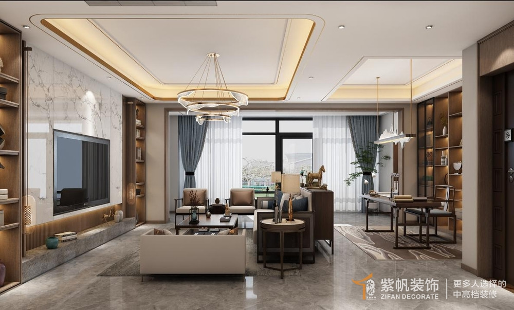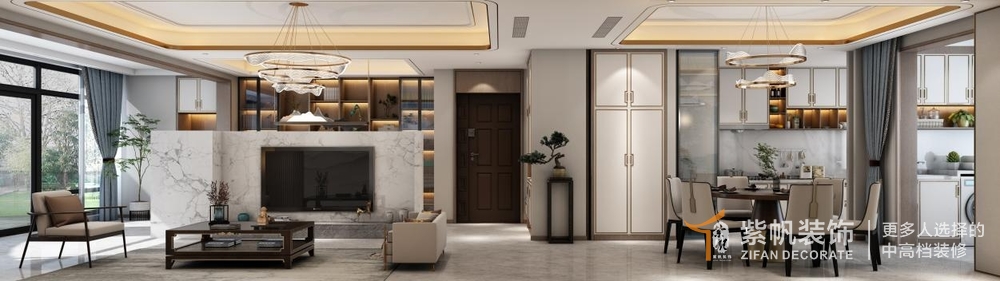 建业城279平新中式风格复式装修效果图