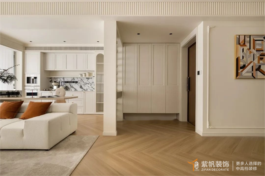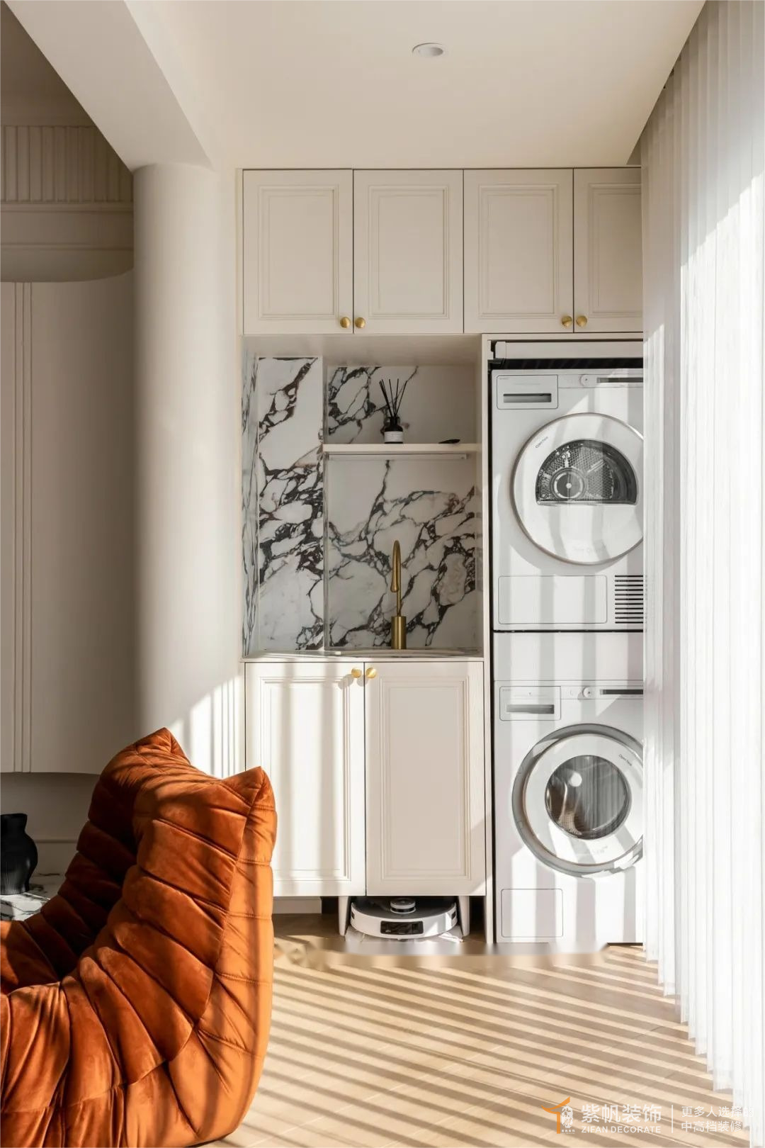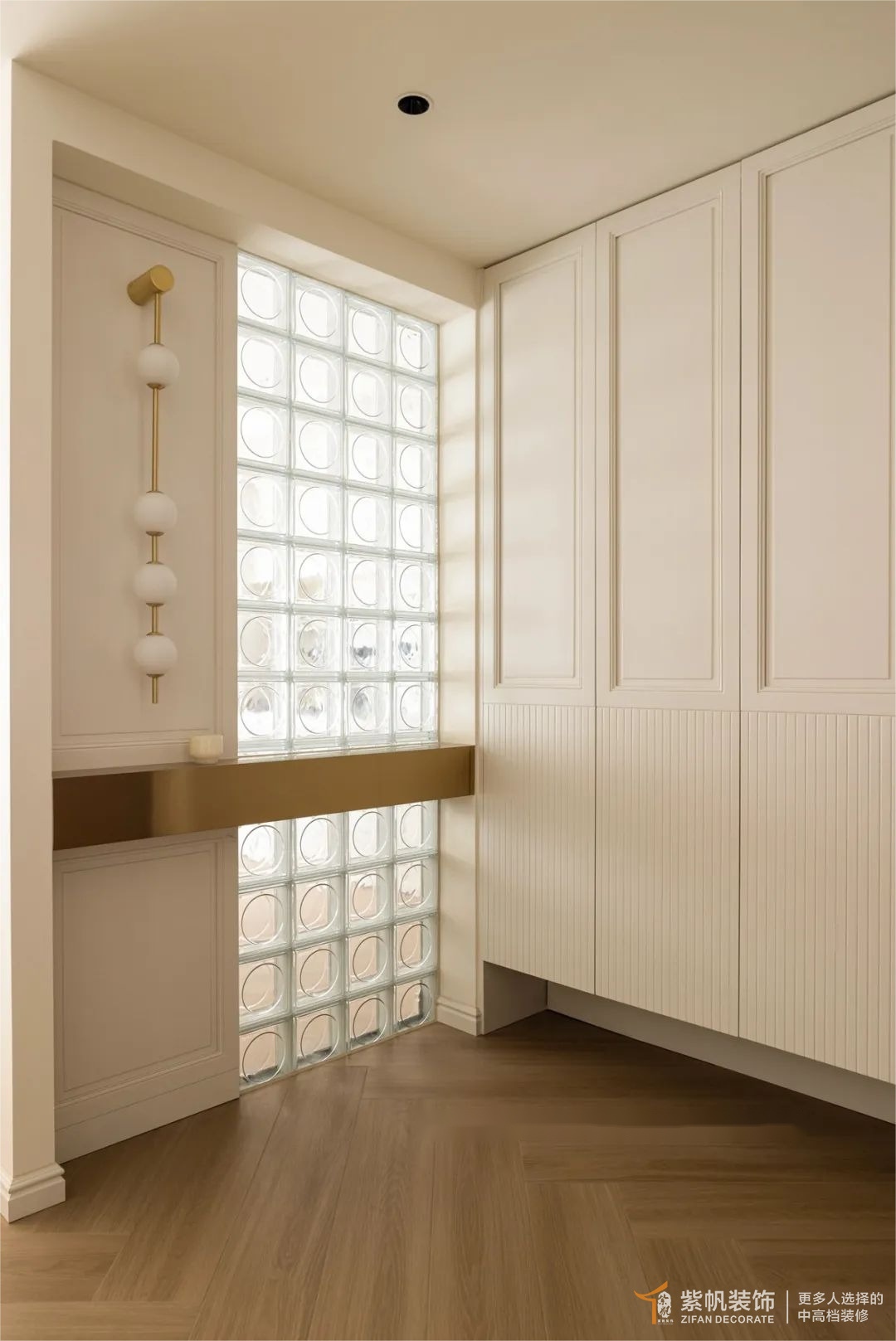 全屋定制法式复古柜,提升收纳的同时又有精致感。