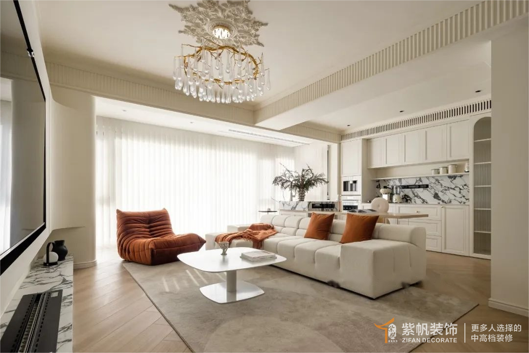②大横厅规划成客厅+西厨,成为家里的下午茶休闲区。