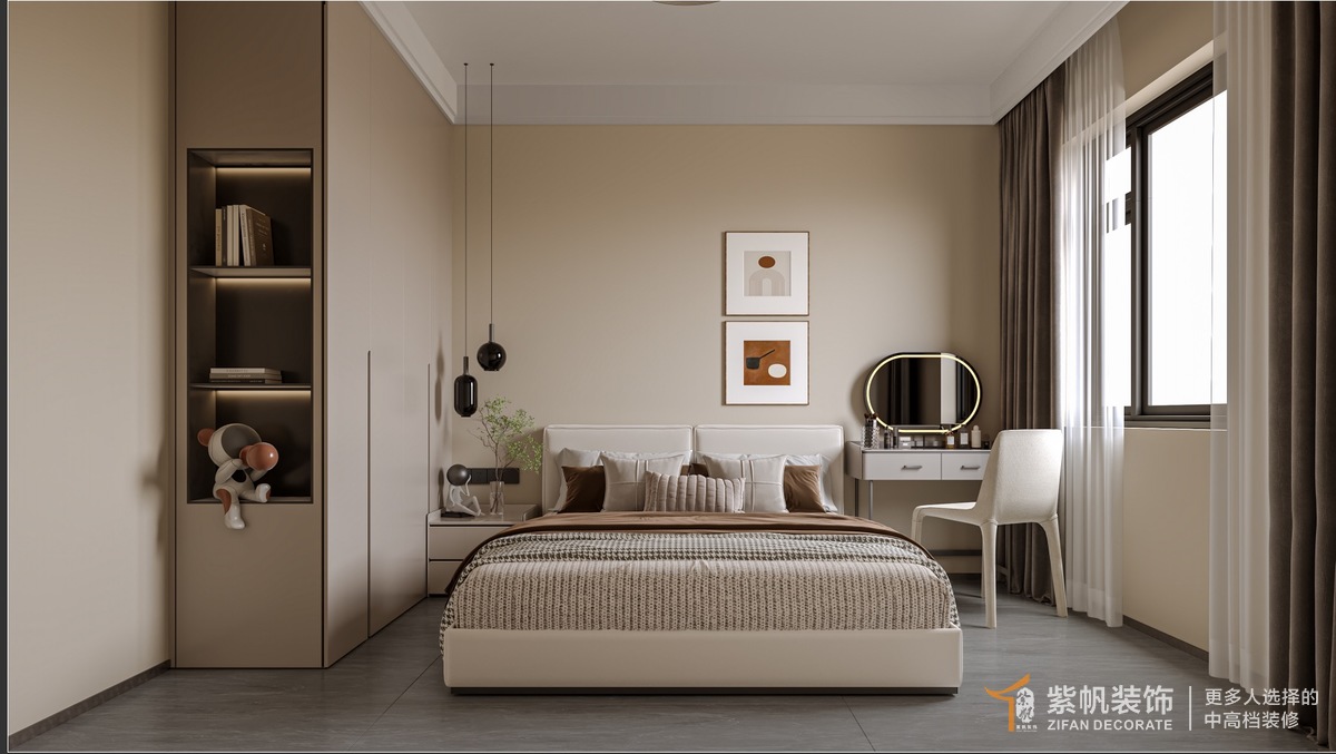 案例说明:客户是单身男士,家里给买的房子,前期家人住主卧,色调喜欢中性色,落地及效果图客户非常满意。