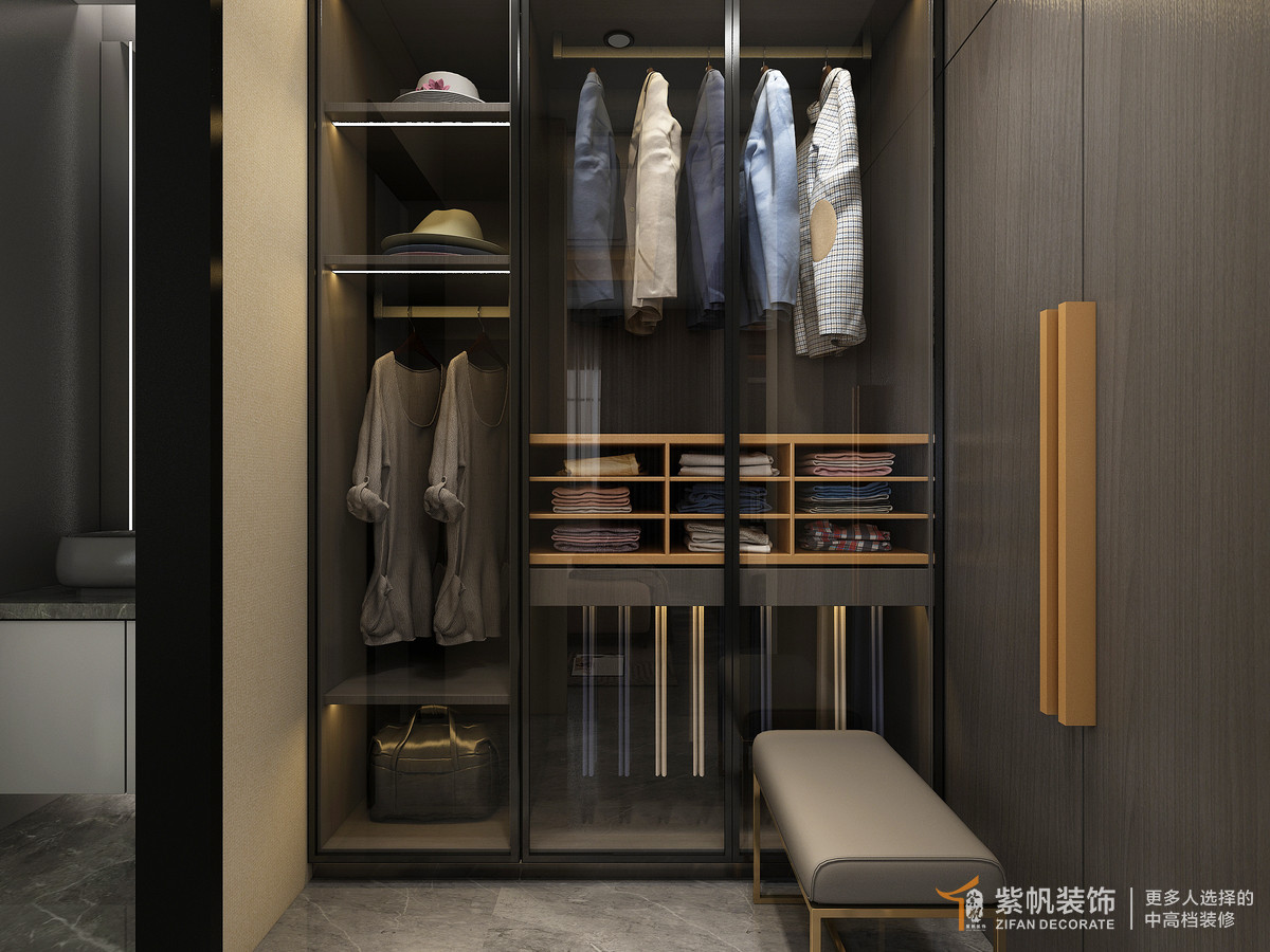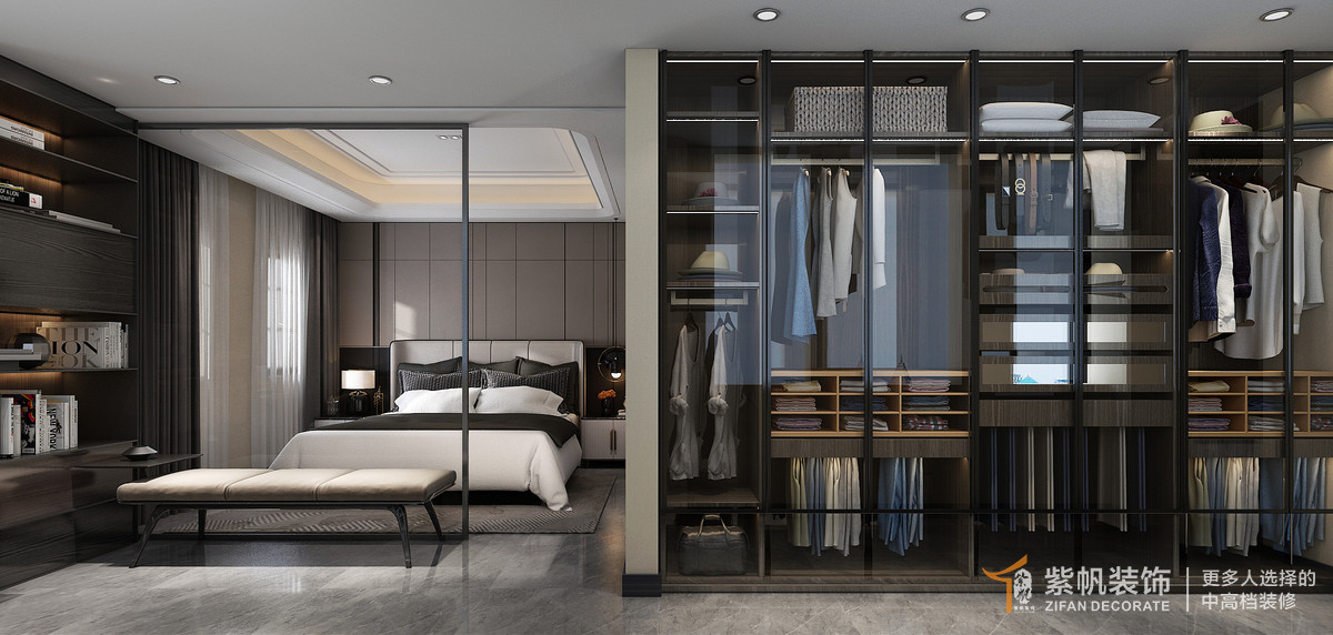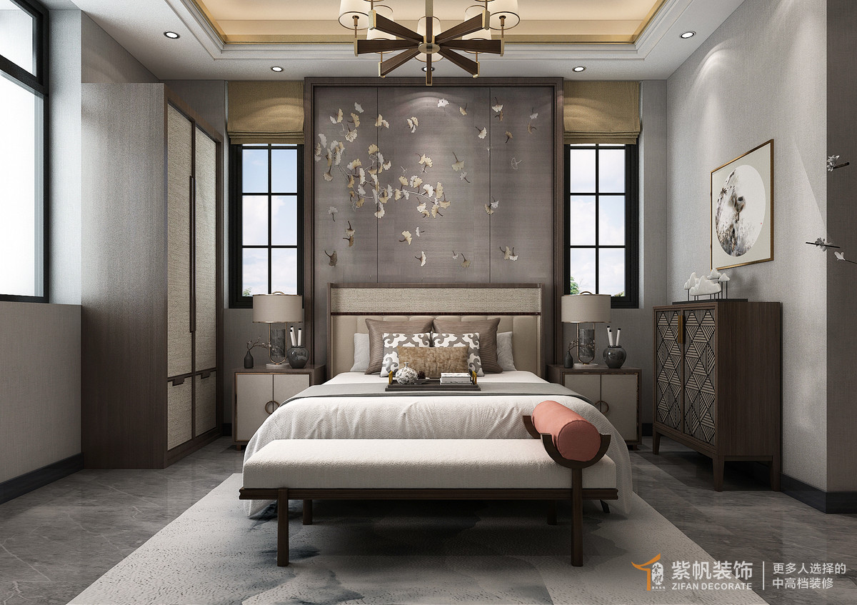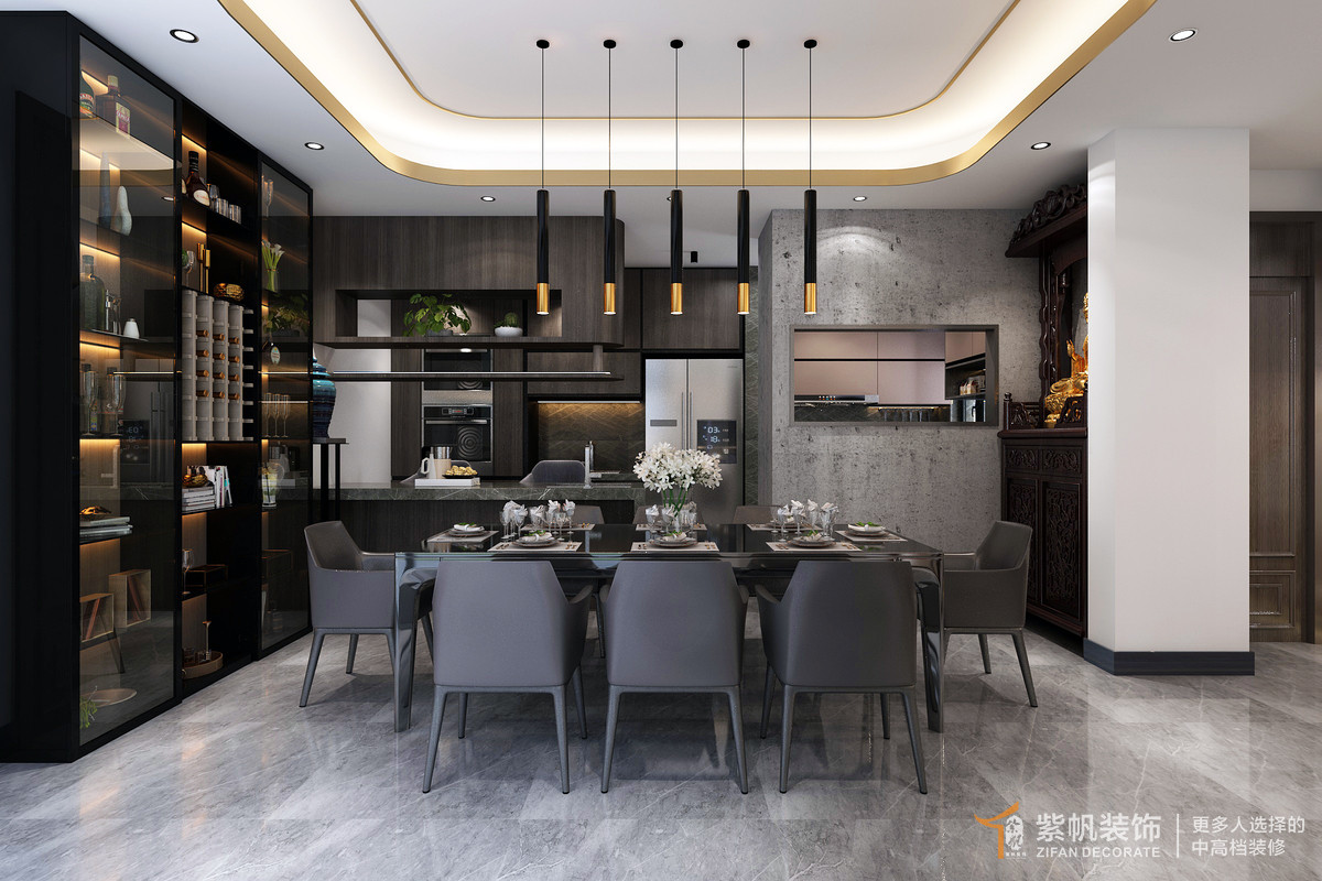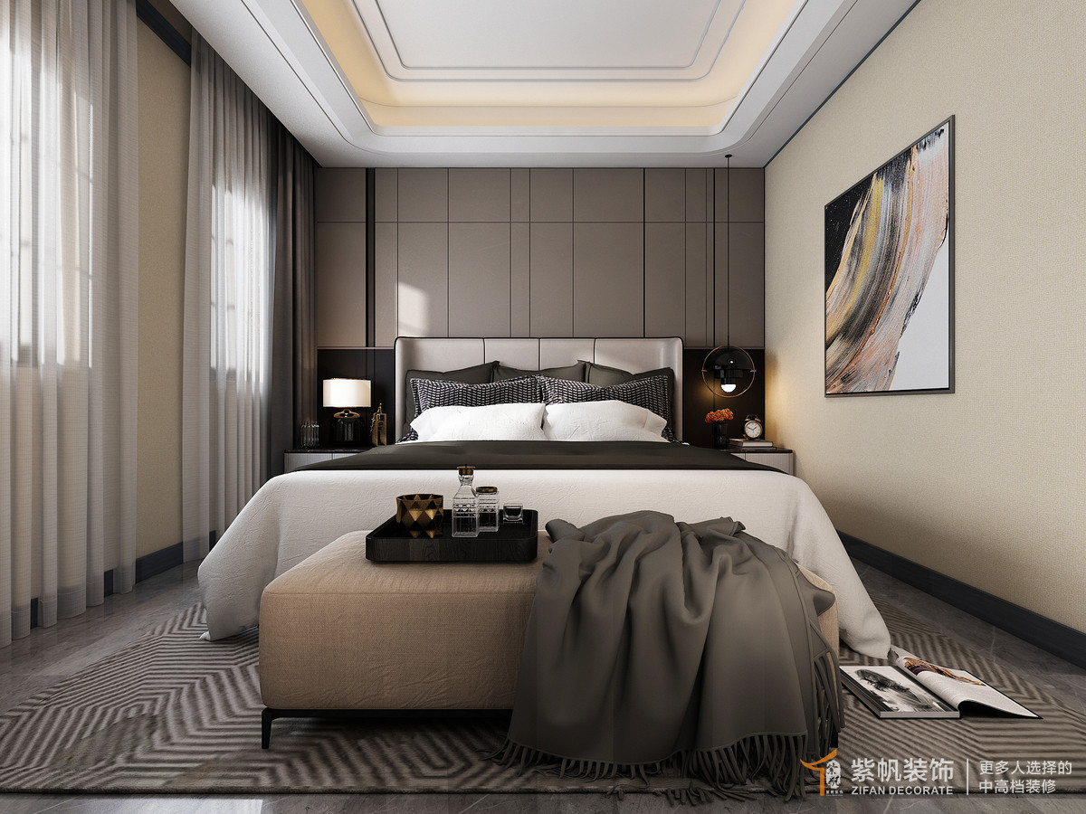 案例说明:定位轻奢新中式风格,以中国传统古典文化作为背景,结合现代时尚设计元素,营造了一个极富东方浪漫情调的居住空间。 色彩上也偏于素雅运用些许的亮色点缀,让空间宁静而不失活力。设计上使用到众多的直线条元素,棱角分明的沙发,方正大气的电视墙,极富层次感的吊顶,这些都将空间的端庄大气渲染得淋漓尽致。多处使用暖色和温润自然的木质材料。空间有着宁静与安稳的自然力量,原木色调、木质纹理和古朴的气韵,总能让空间达到一种纯净的状态,为生活注入悠然气息 ,摒弃一切冗余,这便是生活的纯粹,从纹理和木色中窥见整个树干的生长轨迹,它仿佛在跟你叙述着自然森林的灵动与恬谧。 这新中式的简约,实木的温润,一草一木皆有情调,足够让生活中的意乱,化为细致品味,忘掉工作的烦杂和家人一起舒心地享受这平凡的小日子。