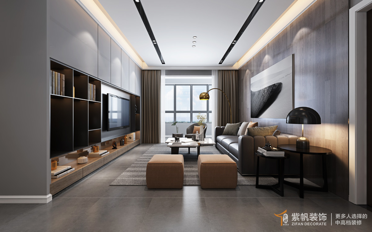 案例说明:业主三口之家,未来可能会要二胎,喜欢现代风格,色调以黑白灰为主,体现质感。效果图落地业主很满意,符合预期。