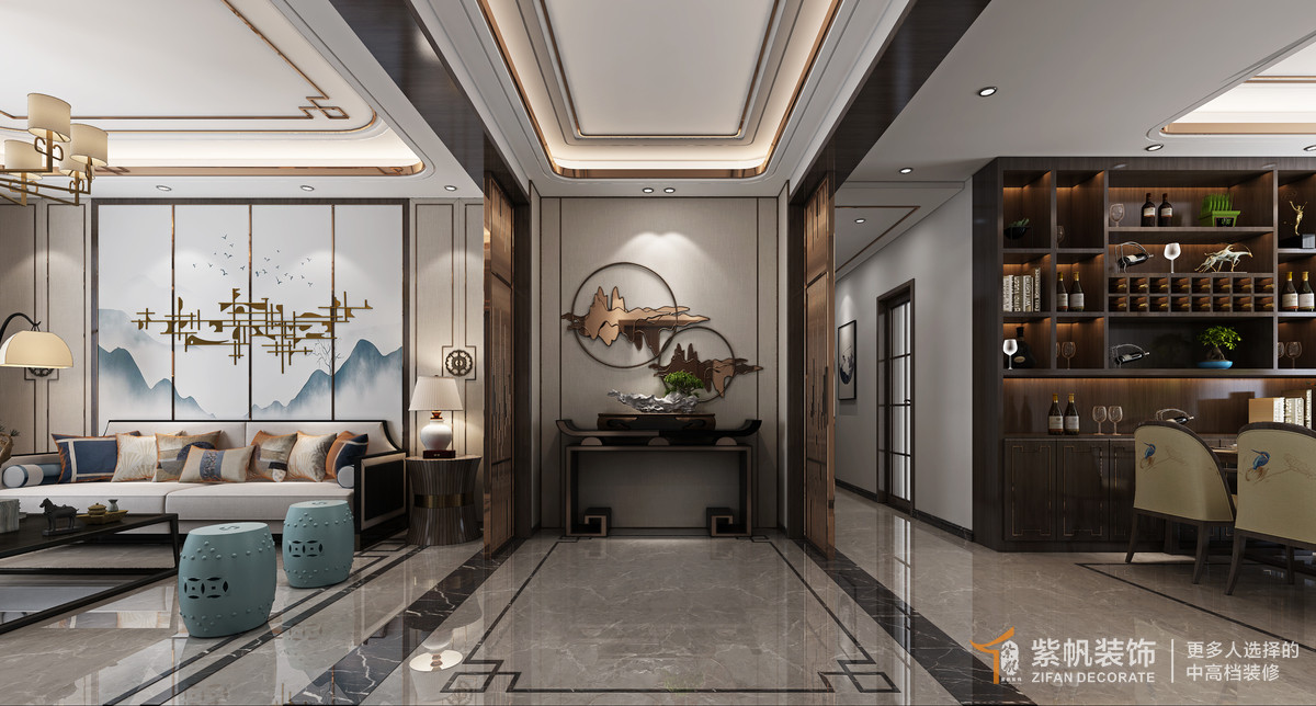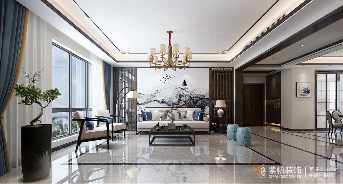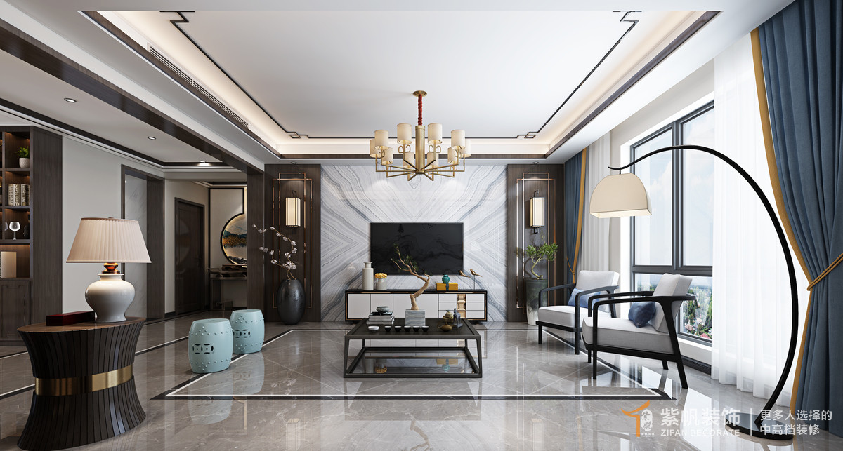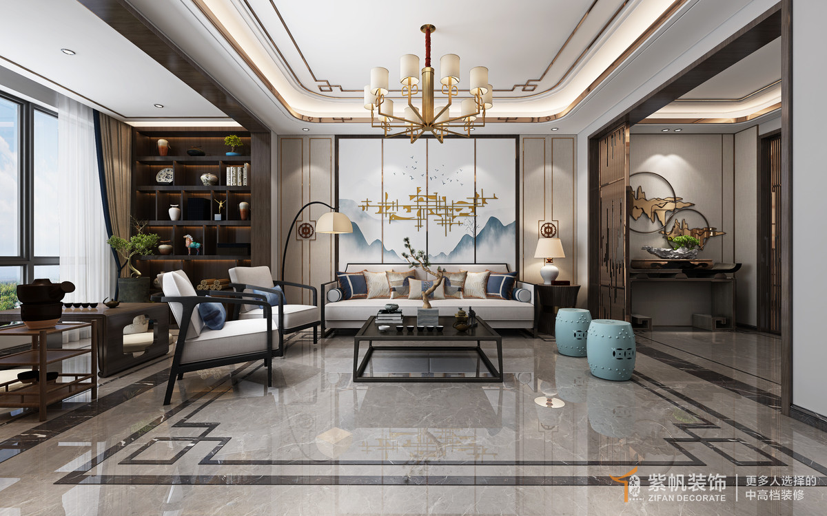 案例说明:业主五口之家,比较喜欢中式中的意境与文化气息,将中式以现代相结合,符合现在,经过沟通,效果呈现如图片所示。业主非常满意。