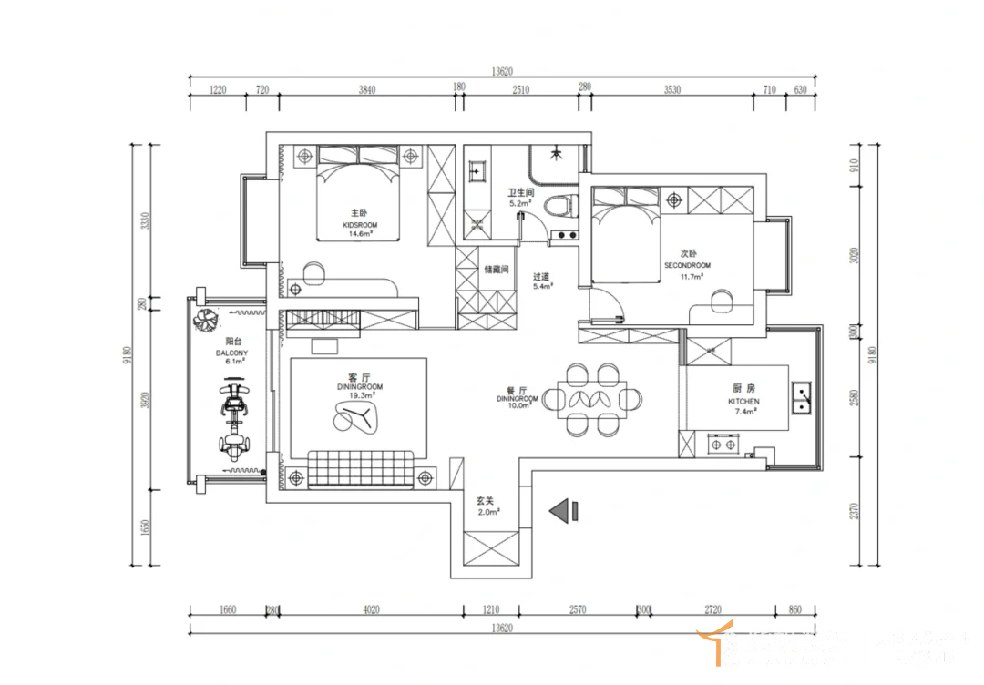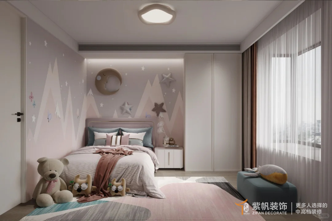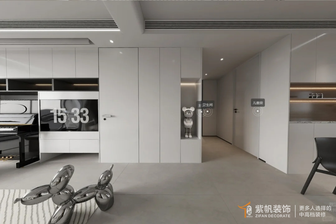 案例说明: 房屋整个大布局上没有改动,只是在靠近卫生间处增加了单独的收纳区,扩大储物空间;将钢琴完全嵌入电视机背景墙中,既增加了空间利用率还满足了业主需求,黑白调的房屋布局简单大气,卧室做不同设计,主卧的干净,儿童房的童趣,让空间整体舒适高级。