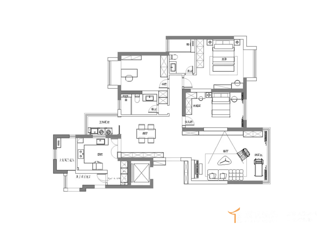 1、保留房型原有布局不做大的改动;