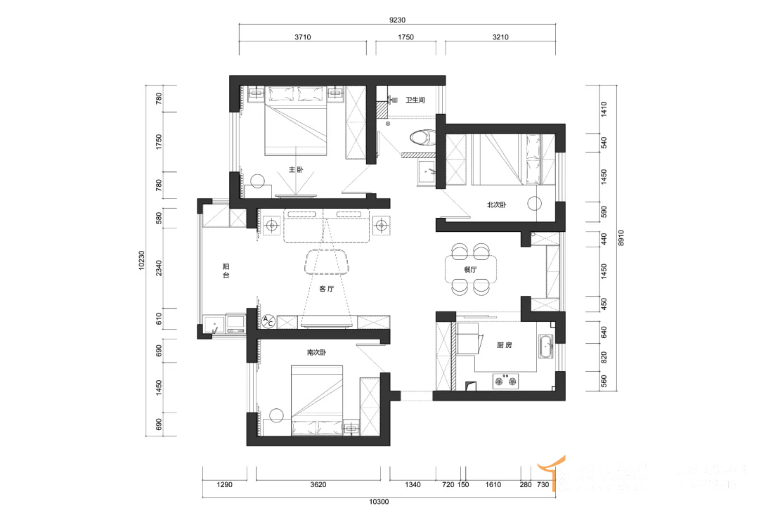 2、以简单色调雨深色家具的复古感做强烈对比,打造简单韵味又时尚的氛围感