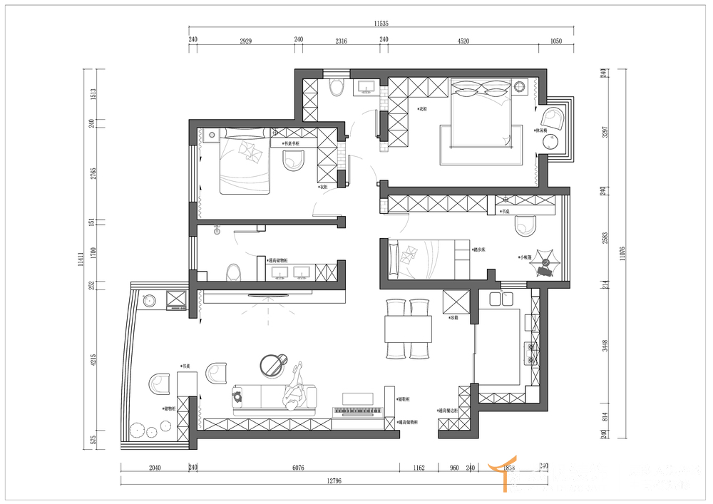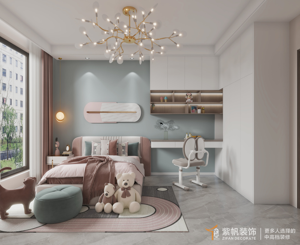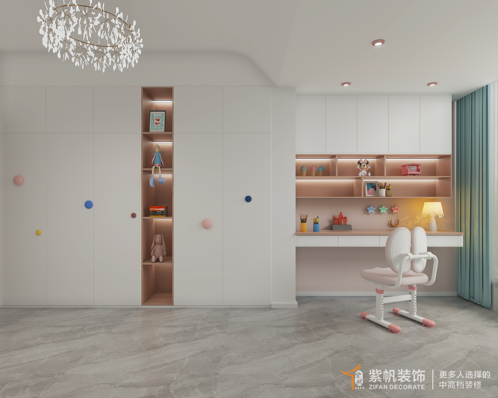 3、厨房阳台的区域放到了小朋友的卧室里,增设采光和读书的空间