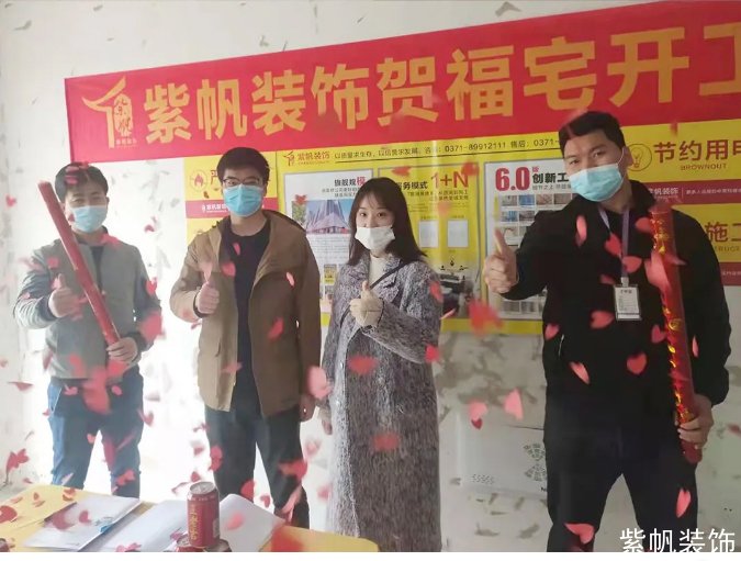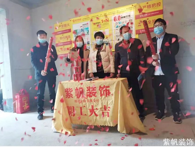 开工仪式上,公司主创设计师、家装顾问、项目经理等所有项目成员到场,祝愿顺利完工,将共同努力给业主打造一个漂亮的家。
