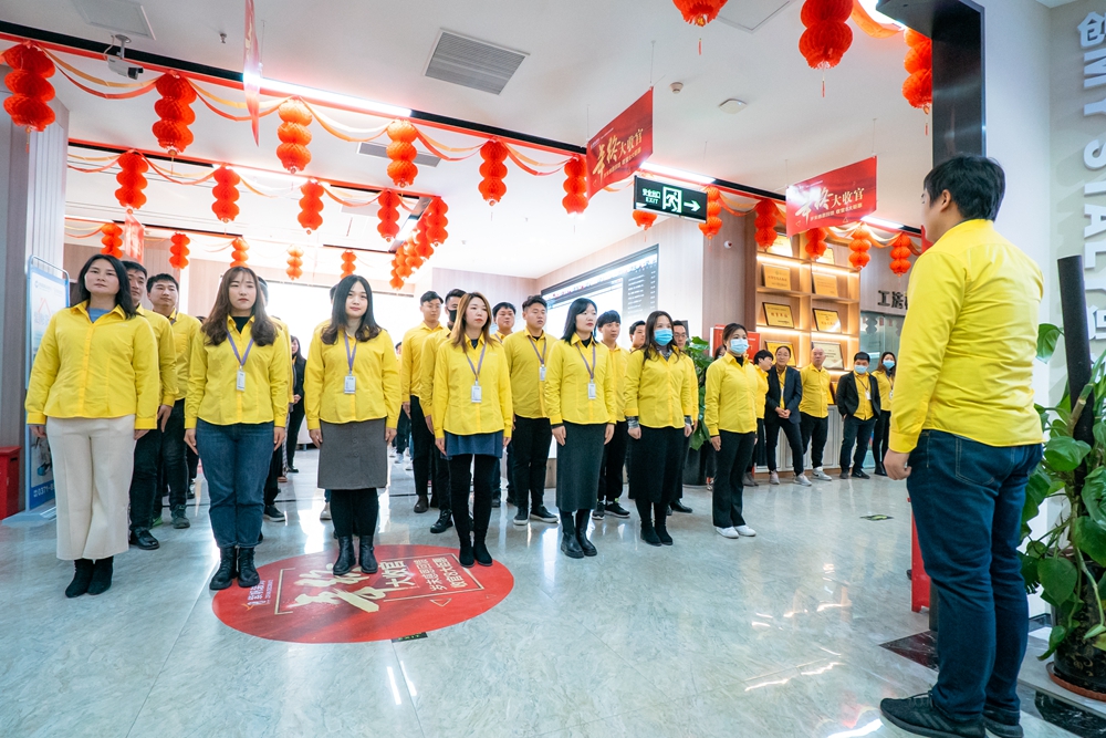 紫帆装饰早报:2020年12月4日早,紫帆装饰集团公司内部全员风采展示PK大赛开赛,第一组登台展示的队伍为设计二分区对阵工程交付中心。